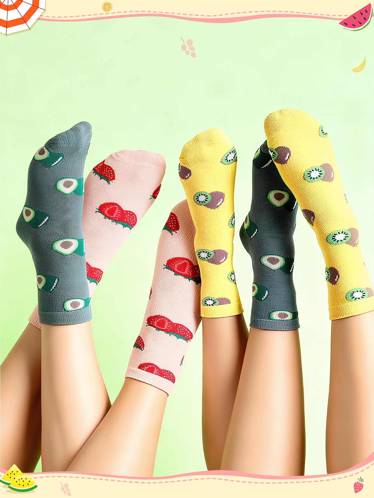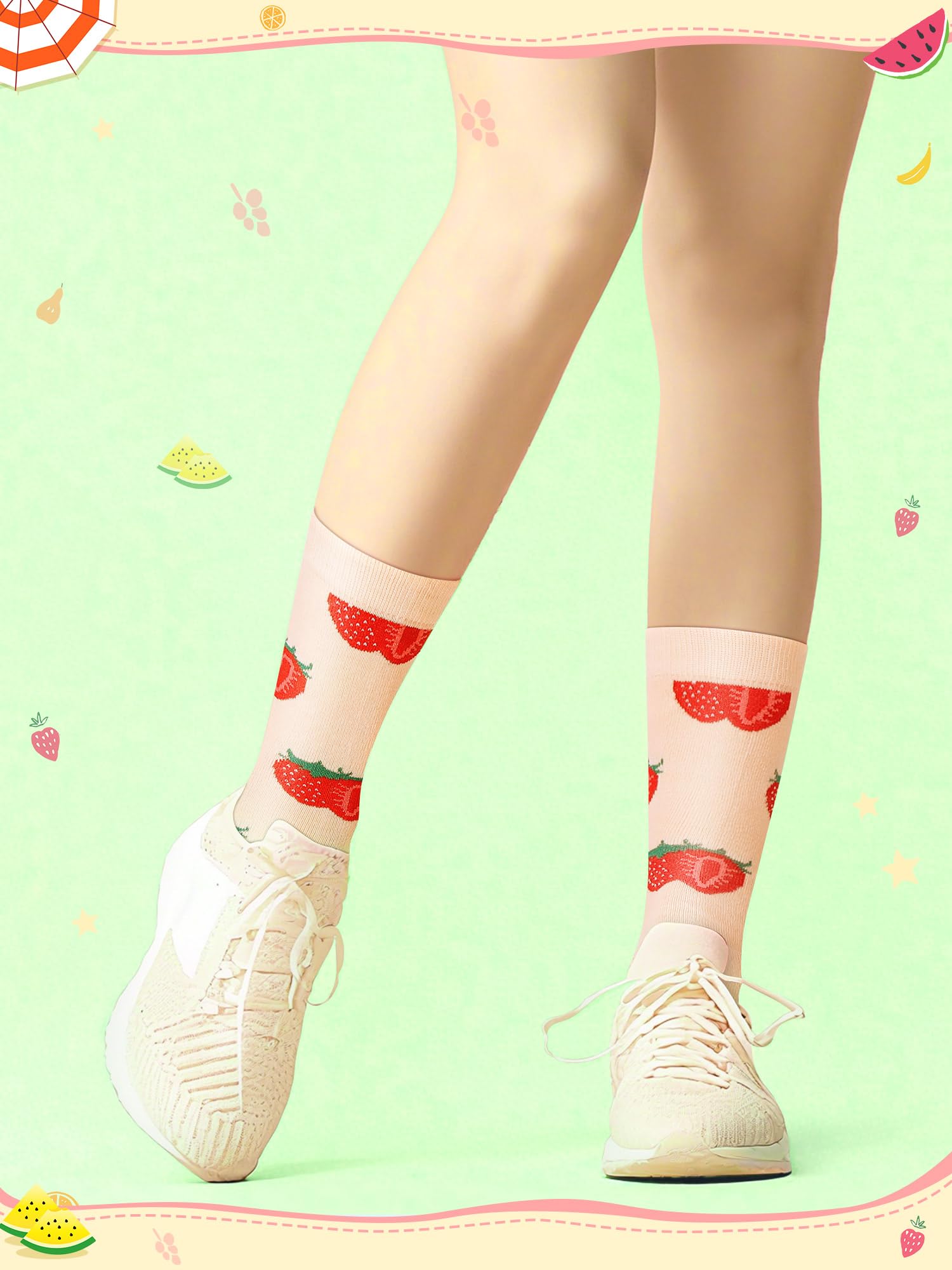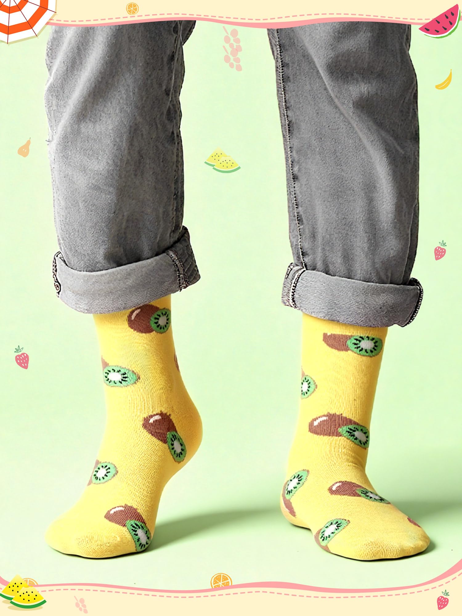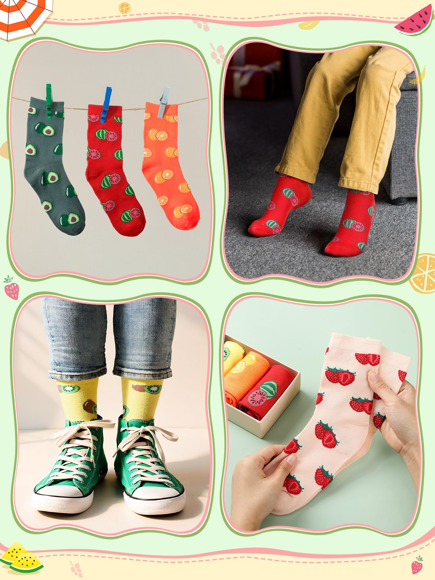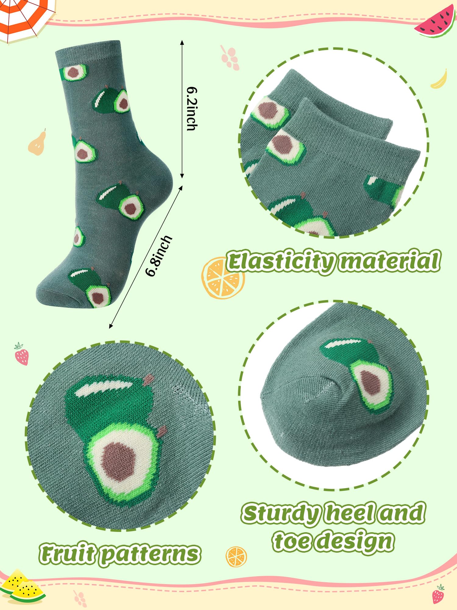 Elastic Socks: designed with elasticity, these women novelty pattern fruit socks comfortably hug your feet without being too loose or too tight; They stay securely in place without causing discomfort from excessive tightness, keeping your feet uniquely warm