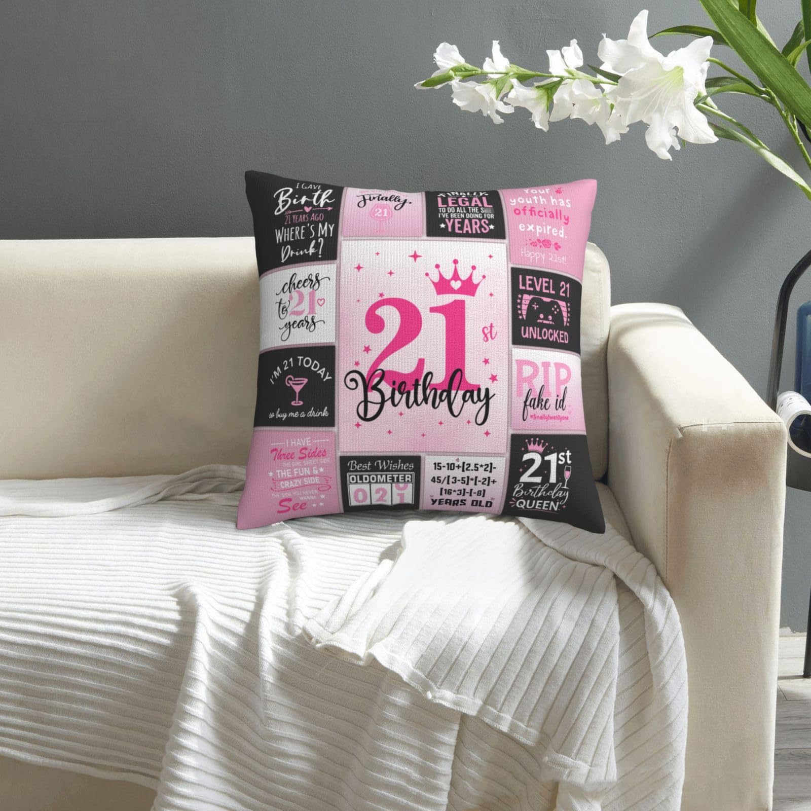 Happy 21st Birthday Gifts: She is Finally Legal! A 21st birthday celebration is something that young girls dream about for years and talk about for years after. On this extraordinary day, this throw pillow cover is a warm birthday gift for 21-year-old women, helping enhance the emotional connection between you.