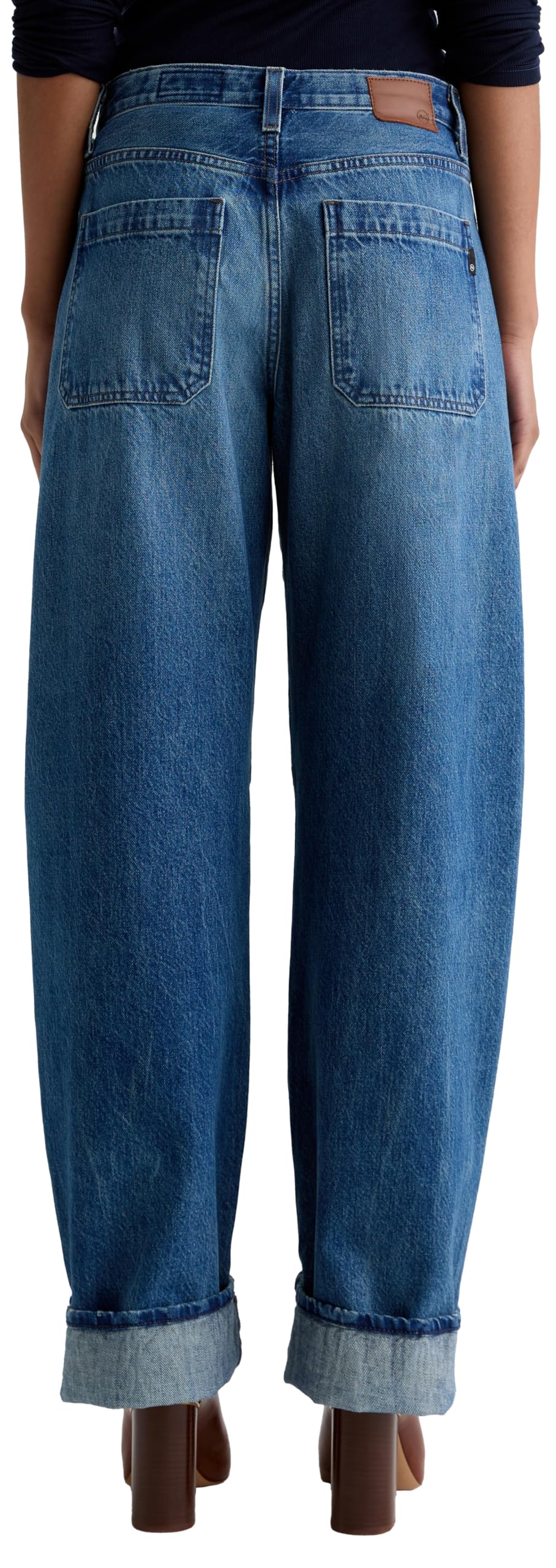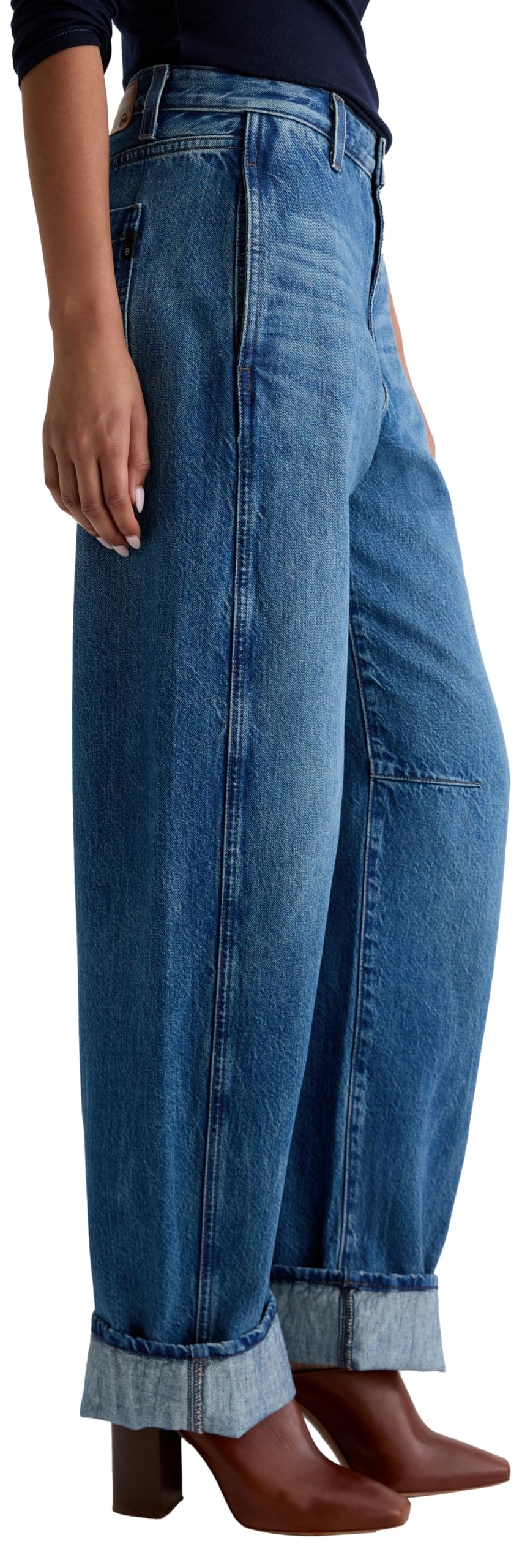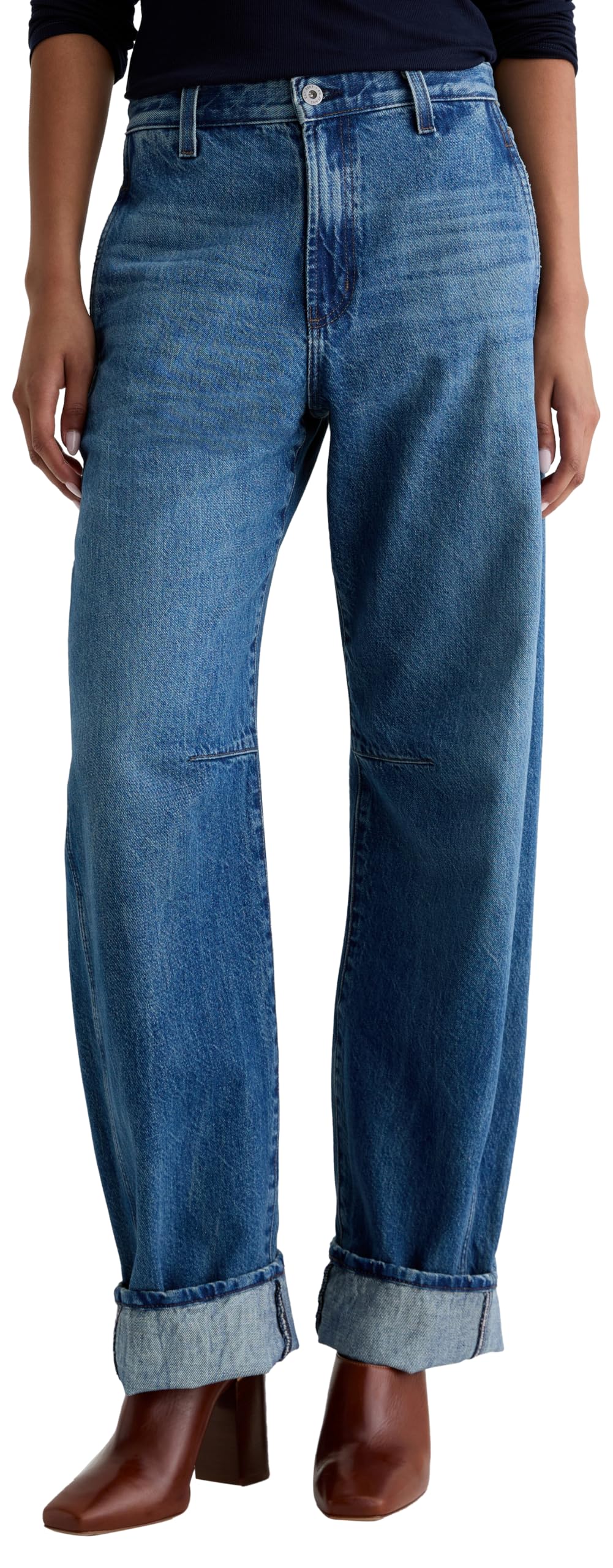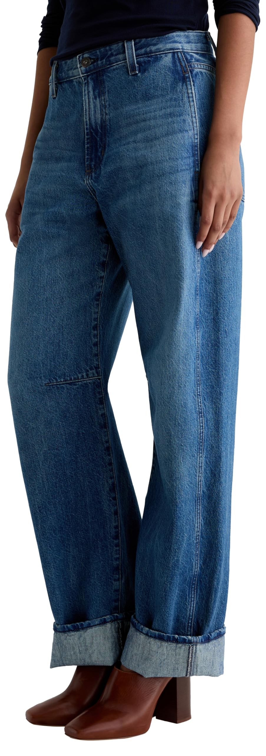 Description The Mercer Cuffed Barrel Jean has a high rise, loose top block and curved outseam. Side seam pockets create a clean front look. Finished with a large double cuffed hem and darts at the knee.