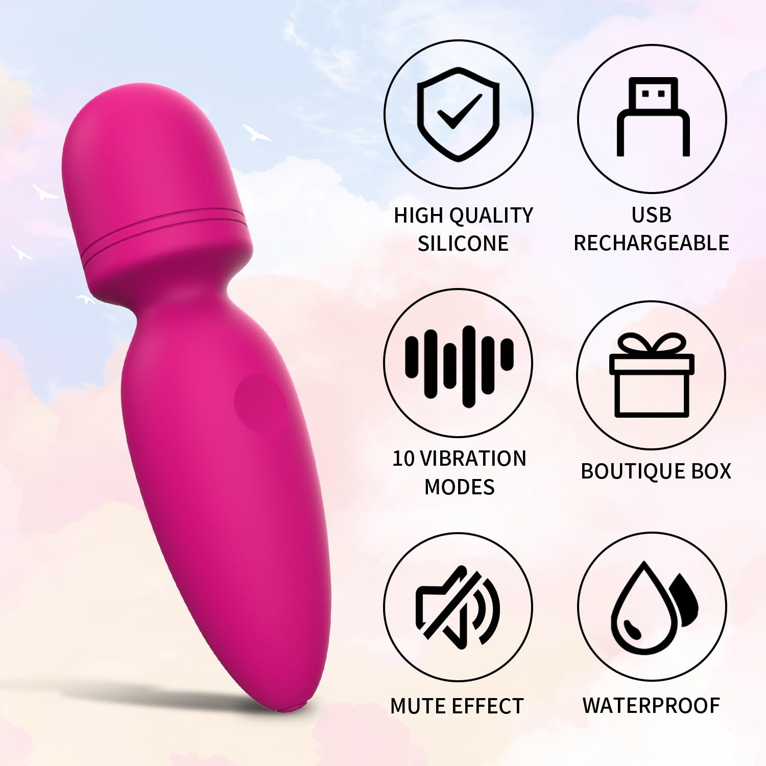Handheld massager has 10 modes.