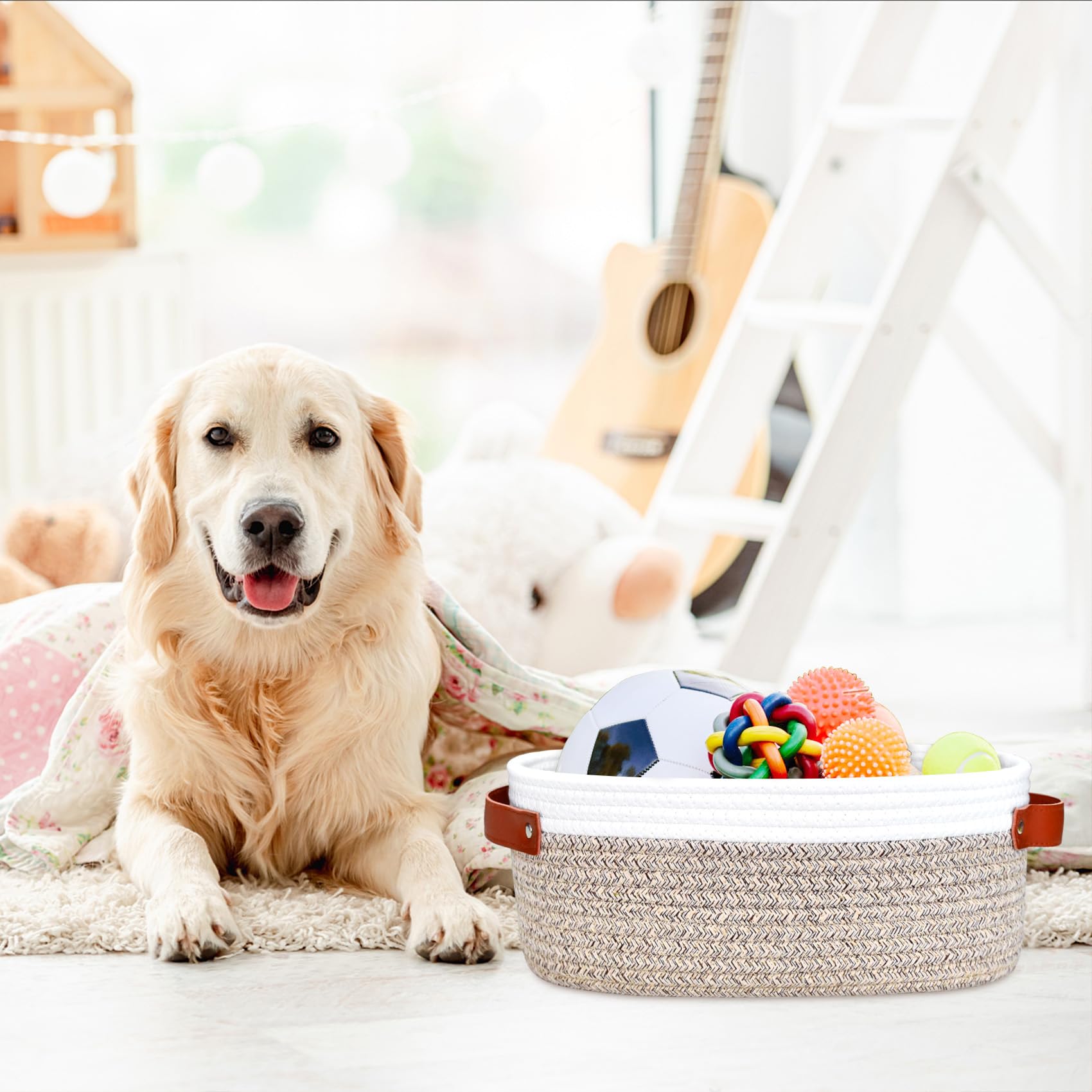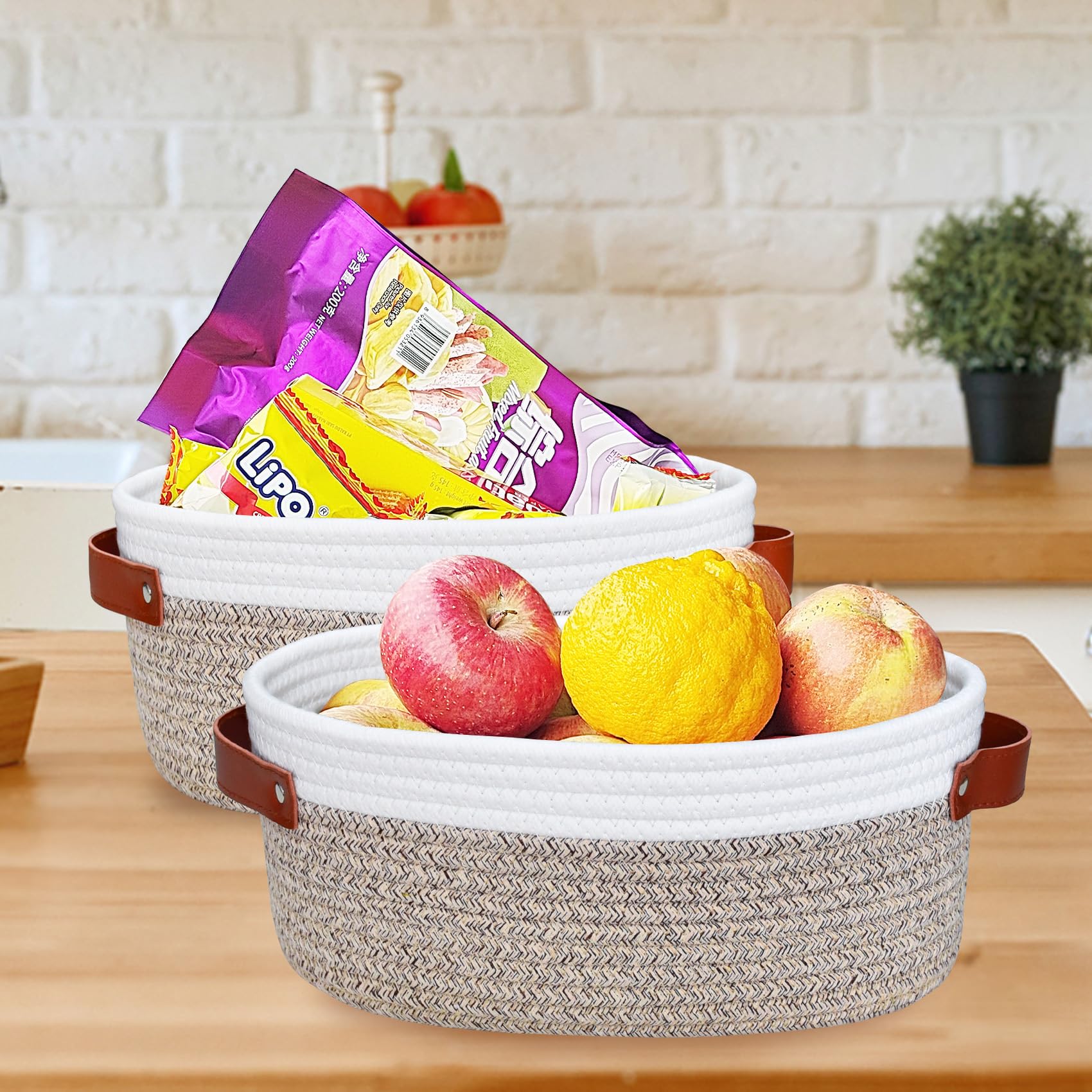 Small baskets for organizing, keep spa essential, fruits, remote control, towel, diaper, blanket, toy, nursery necessaries, make-ups organized in order. Even can be used as dog cat basket