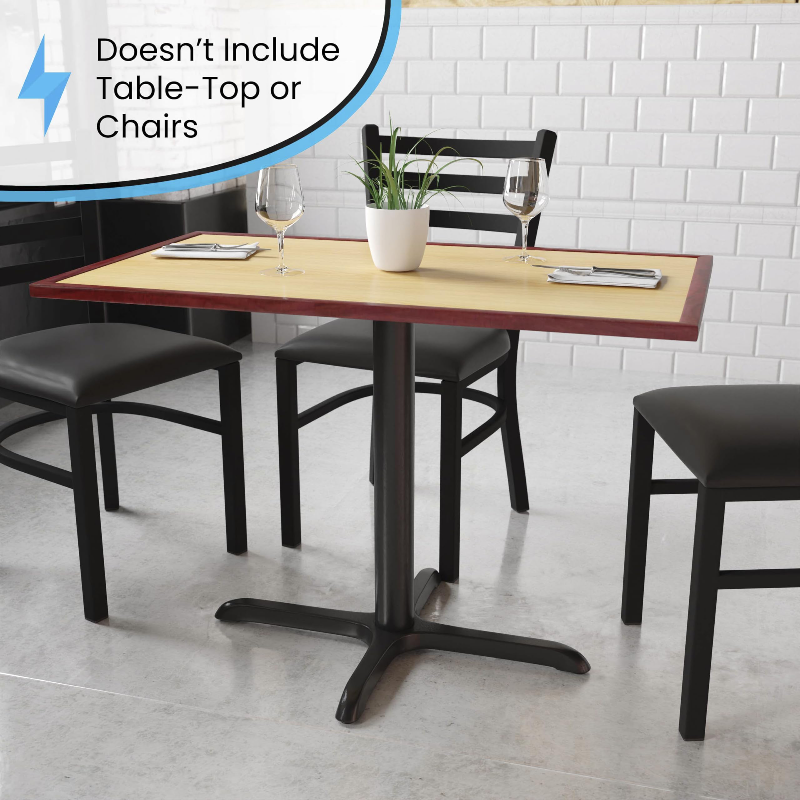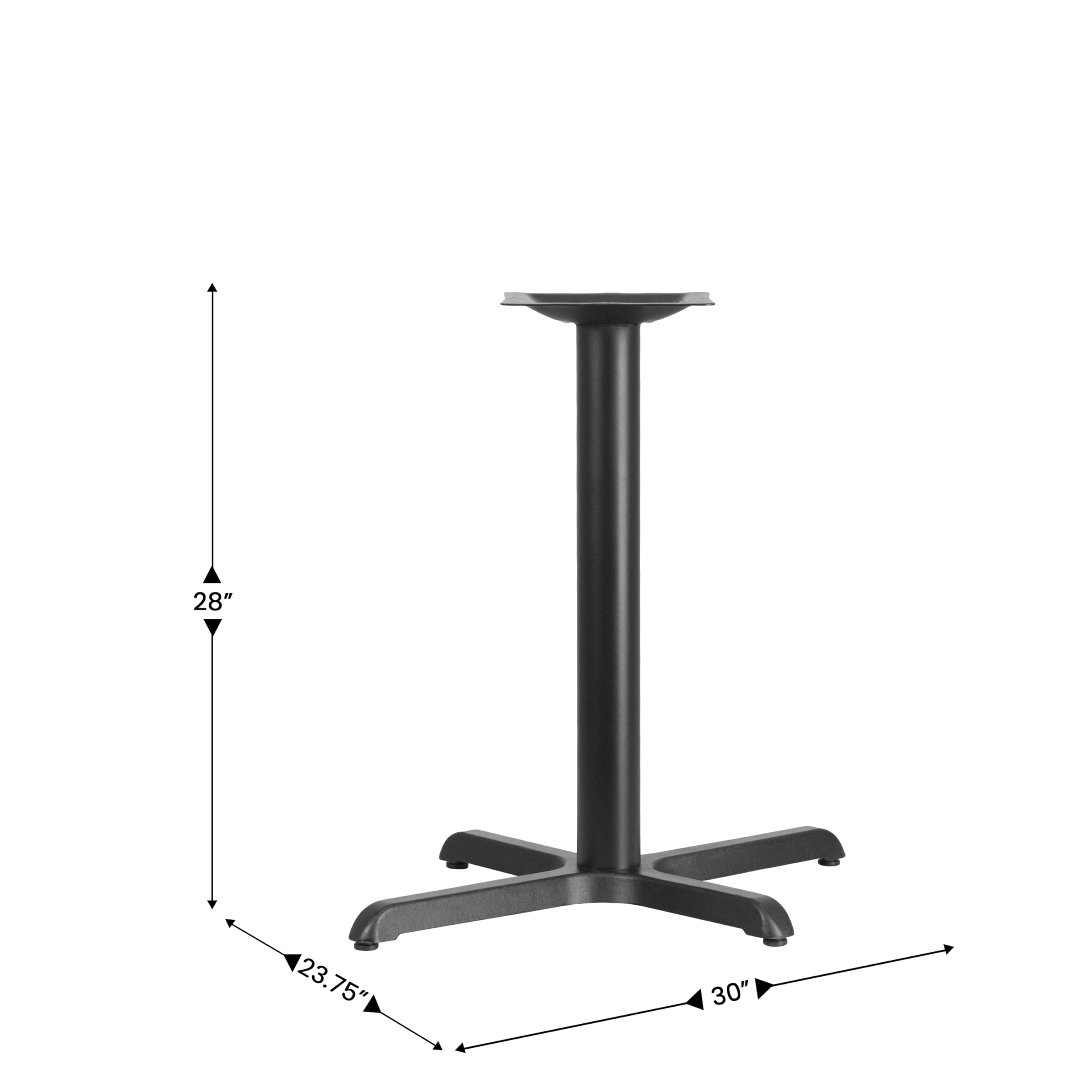 Customize the look of your business with the Flash Furniture Beverly Restaurant Table X-Base. This restaurant table base with a X-base configuration makes it easy to create your ideal setting in restaurants and other commercial environments, providing optimal stability for table tops while offering plenty of foot room for your patrons. It's recommended for 24" x 42" to 30" x 48" rectangular table tops to enhance your space with depth and balance. Constructed from durable cast iron with a black powder-coated finish, this X-base is designed for commercial use to withstand the daily rigors in the busy hospitality industry. The restaurant table base measures 23.75"W x 30"D x 28.25"H overall, and the top plate is conveniently pre-welded to column and ready for an easy 2-piece assembly with a single bolt.