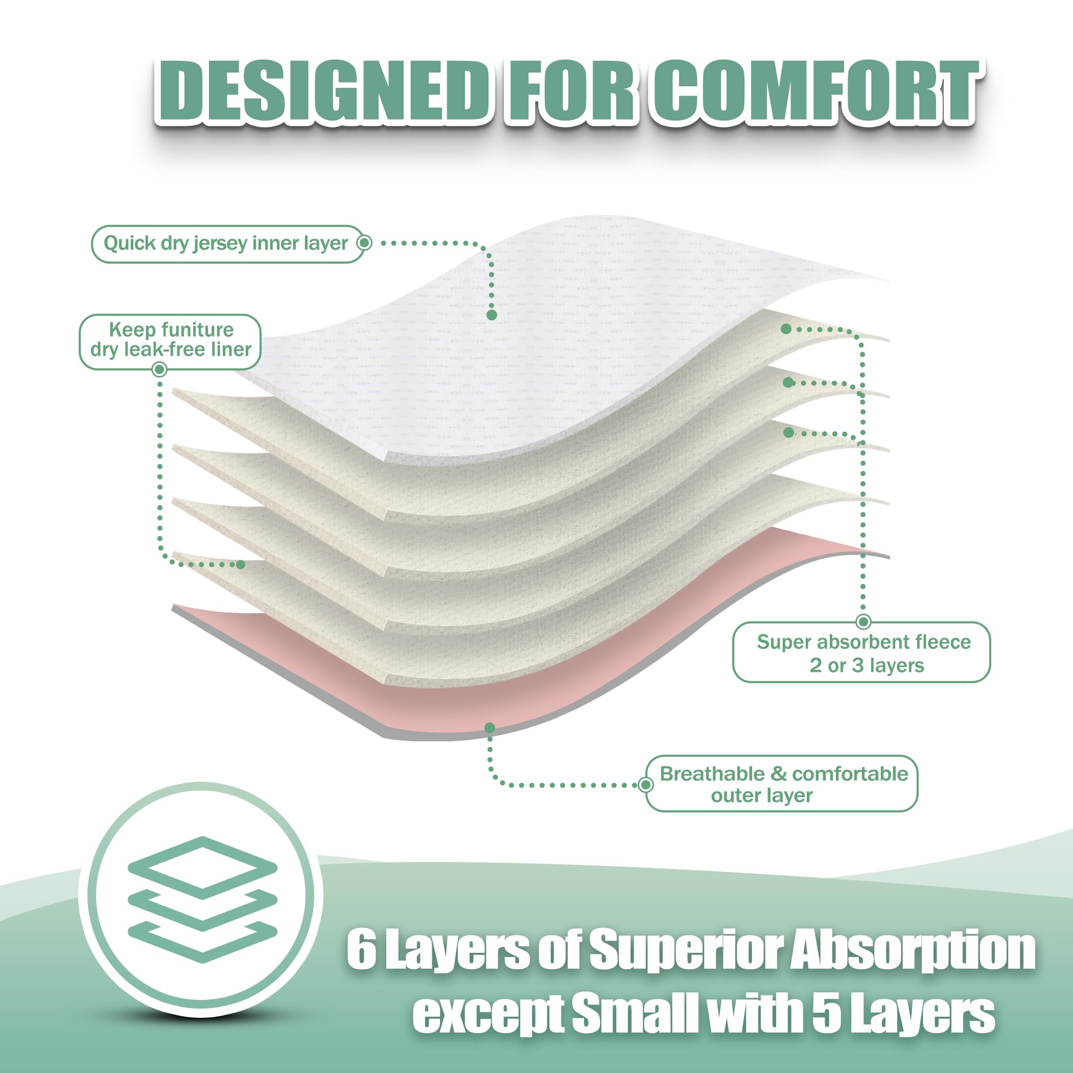 Strong Absorbent Cloth Dog Diapers - Pad is sewn into the diaper and a leak-free outer layer to keep off leaks and damage to rugs, carpets, chairs and sofas.