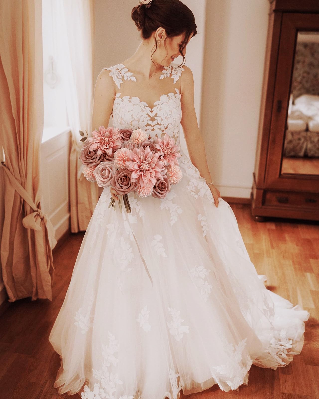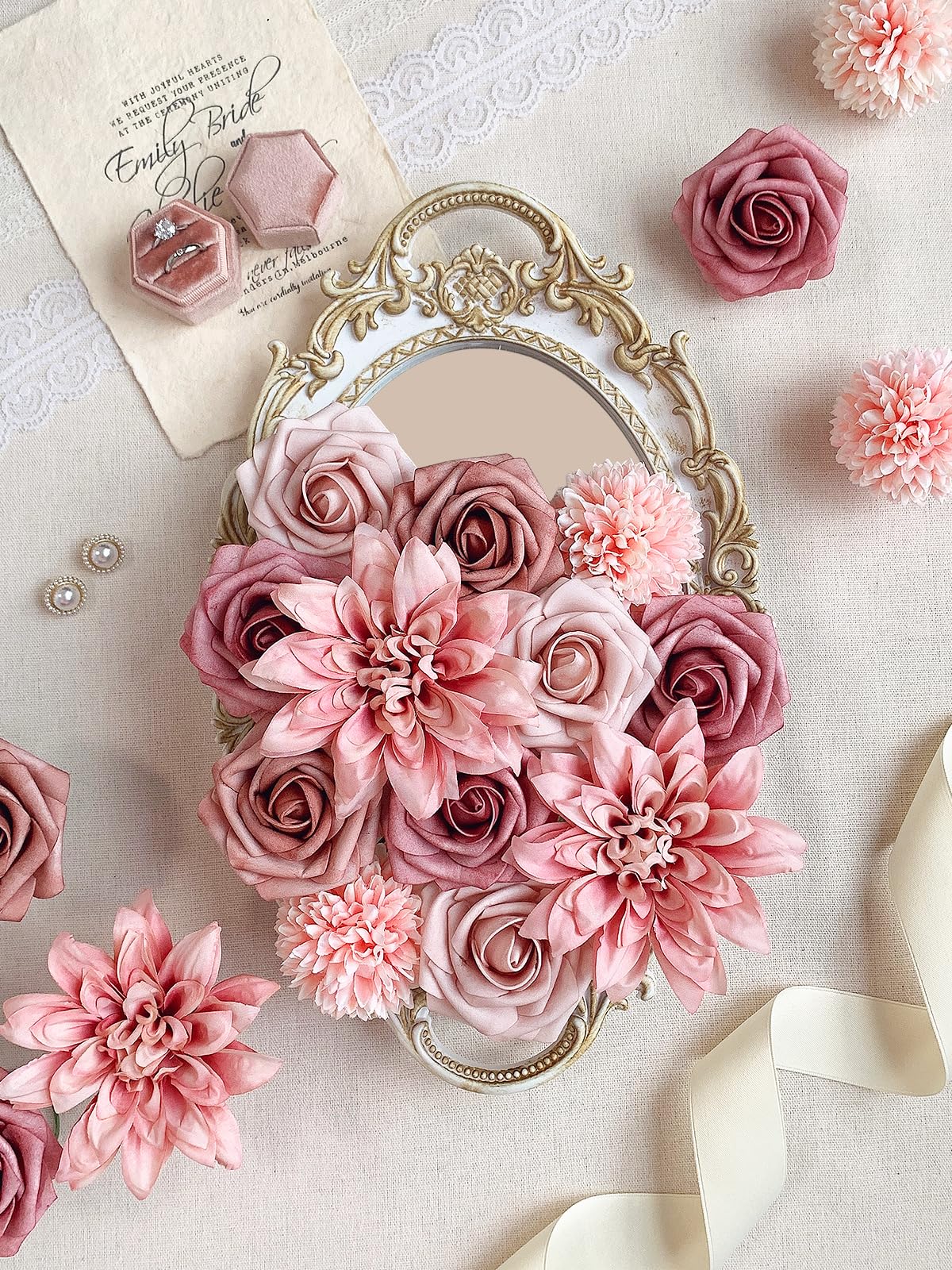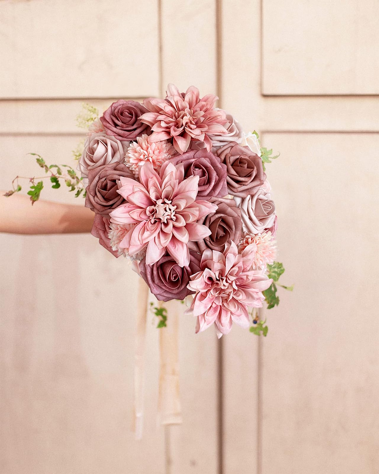 Reusable and Durability: The pink roses artificial flowers bouquet will blooming forever without any upkeep needed. Repurpose the dusty pink roses flowers artificial into home floral designs and enjoy all year-round