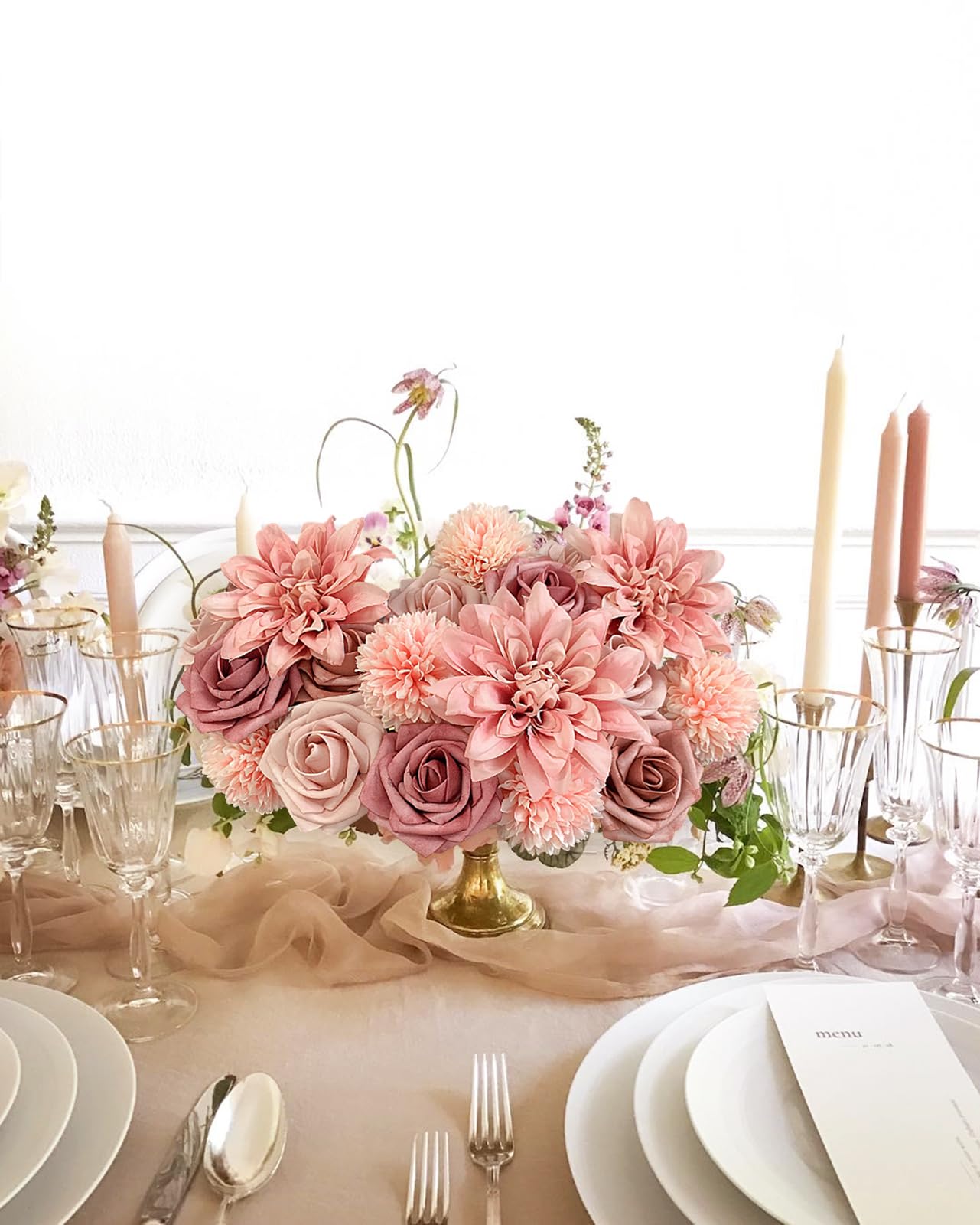 Multipurpose: Pink artificial flowers for decoration are the perfect base for wedding table centerpieces and faux floral arrangements. Easily style the dusty pink roses artificial flowers in bouquet, wreath, garlands, cake decorating, arch, vase, backdrop