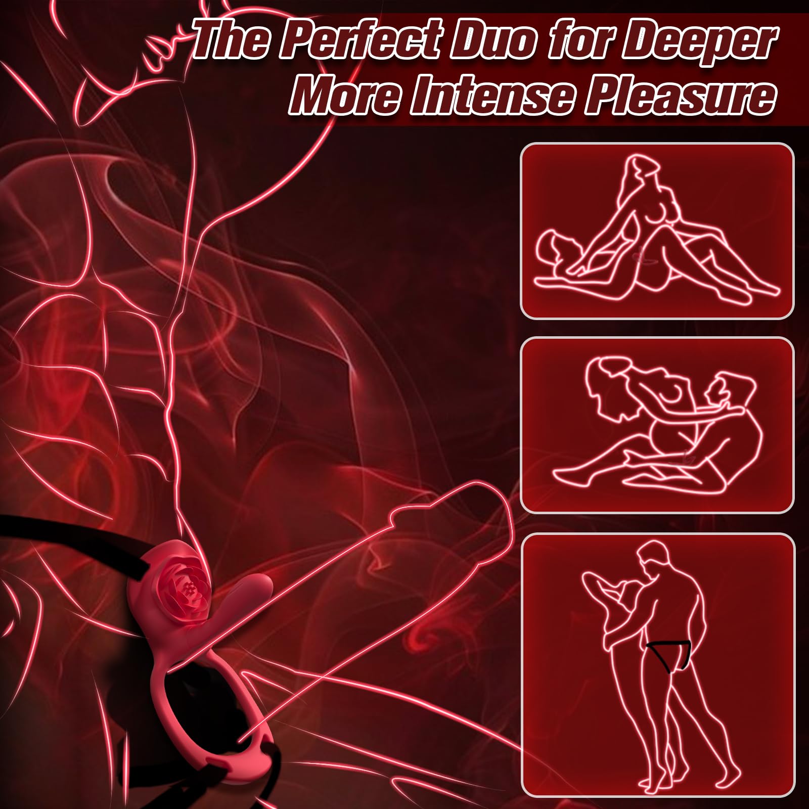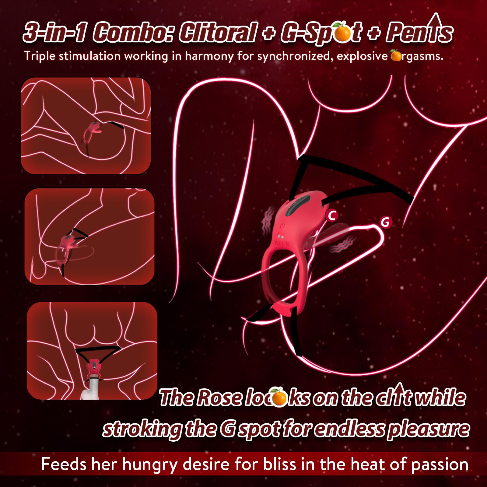 Synchronous Triple Stimulation for Clit, G-Spot & Penis for Couples– One couples vibrator, three hotspots ignited. The rose-shaped tip keeps teasing the clitoris, while the front-end vibrator hugs the penis and pulses against the G-spot—turning every moment into a synchronized peak for both partners.
