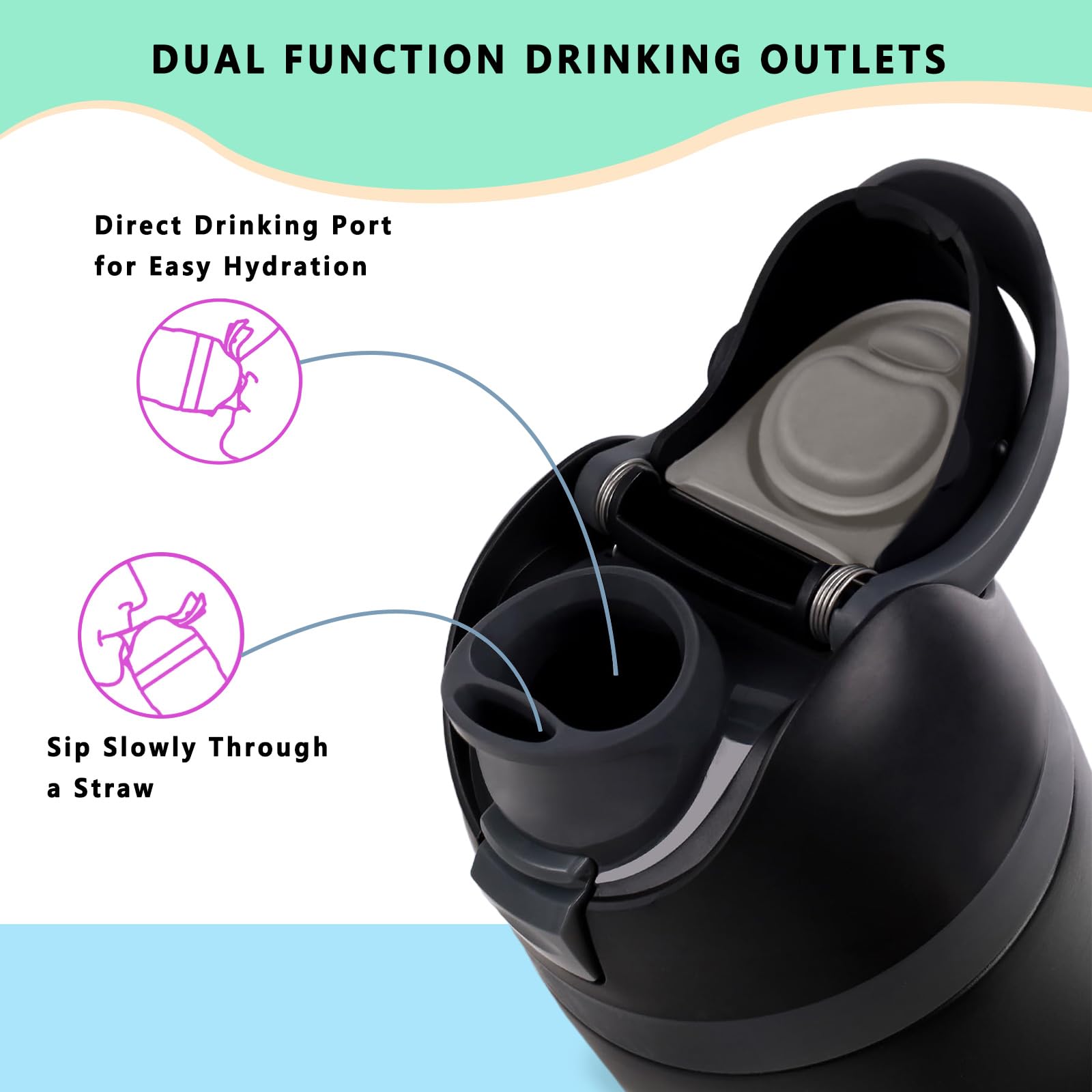 【2-in-1 Drinking Options】Enjoy two convenient drinking options with the compatible with Owala replacement lid. Featuring two drinking ports, it allows you to sip through a small opening or take a big gulp through a larger one. Plus, it’s compatible with your original straw, making it a versatile solution for easy hydration on the go.