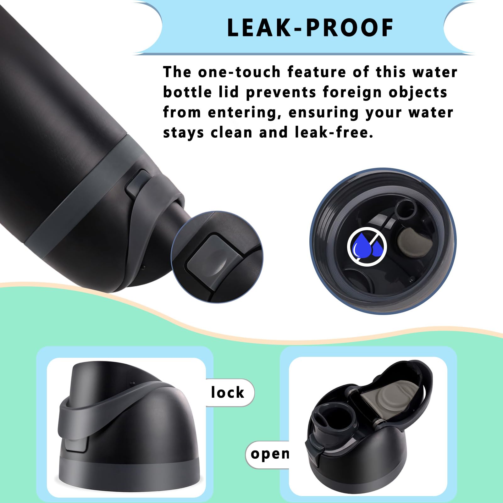 【One-Button Operation】The user-friendly one-button design allows easy opening and closing, catering to a variety of scenarios, whether at the gym, in the office, or outdoors. Perfect for any compatible with Owala lid replacement, this lid keeps your hydration routine effortless and convenient, whether using your for Owala cap on your 32 oz or 46 oz water bottle.