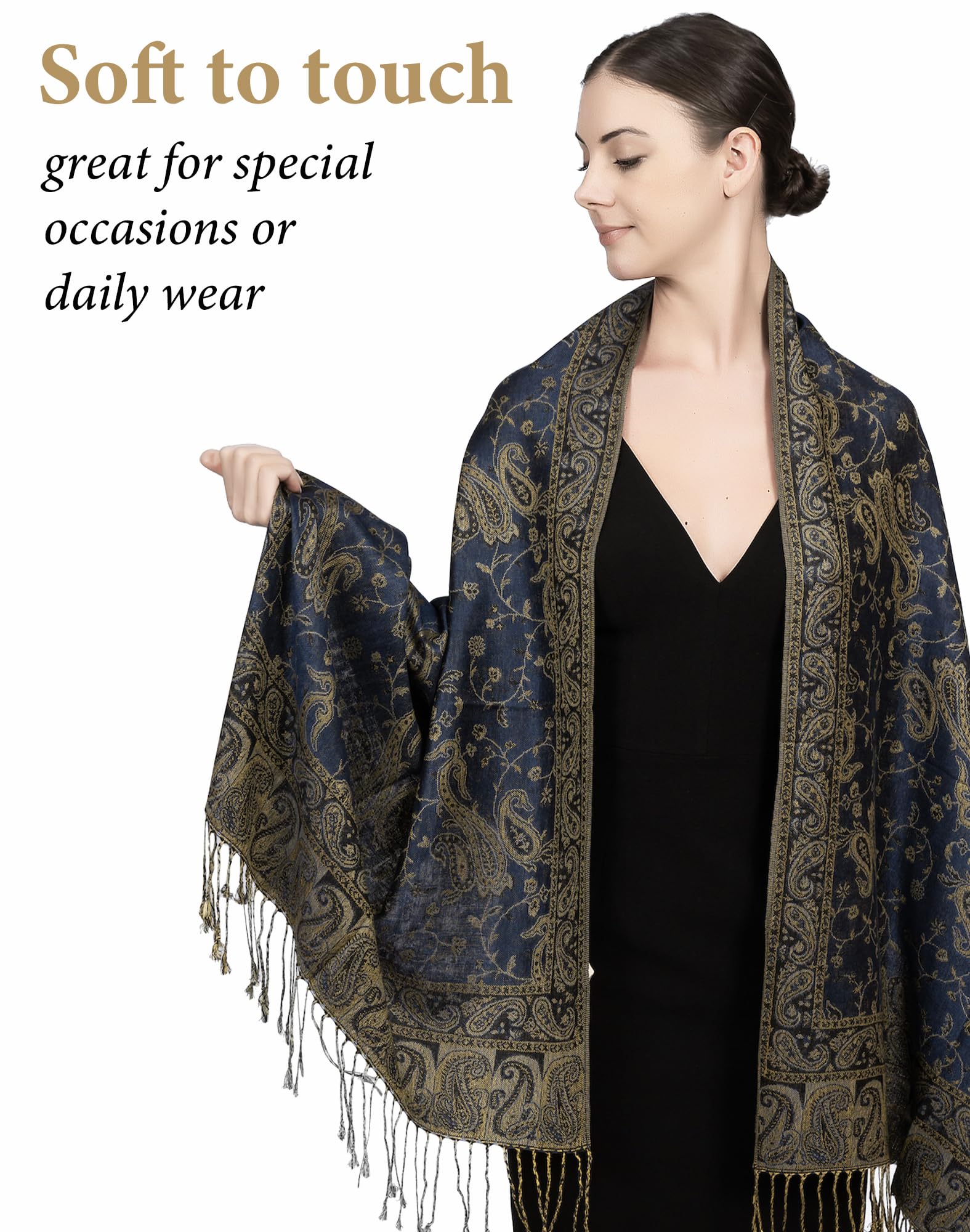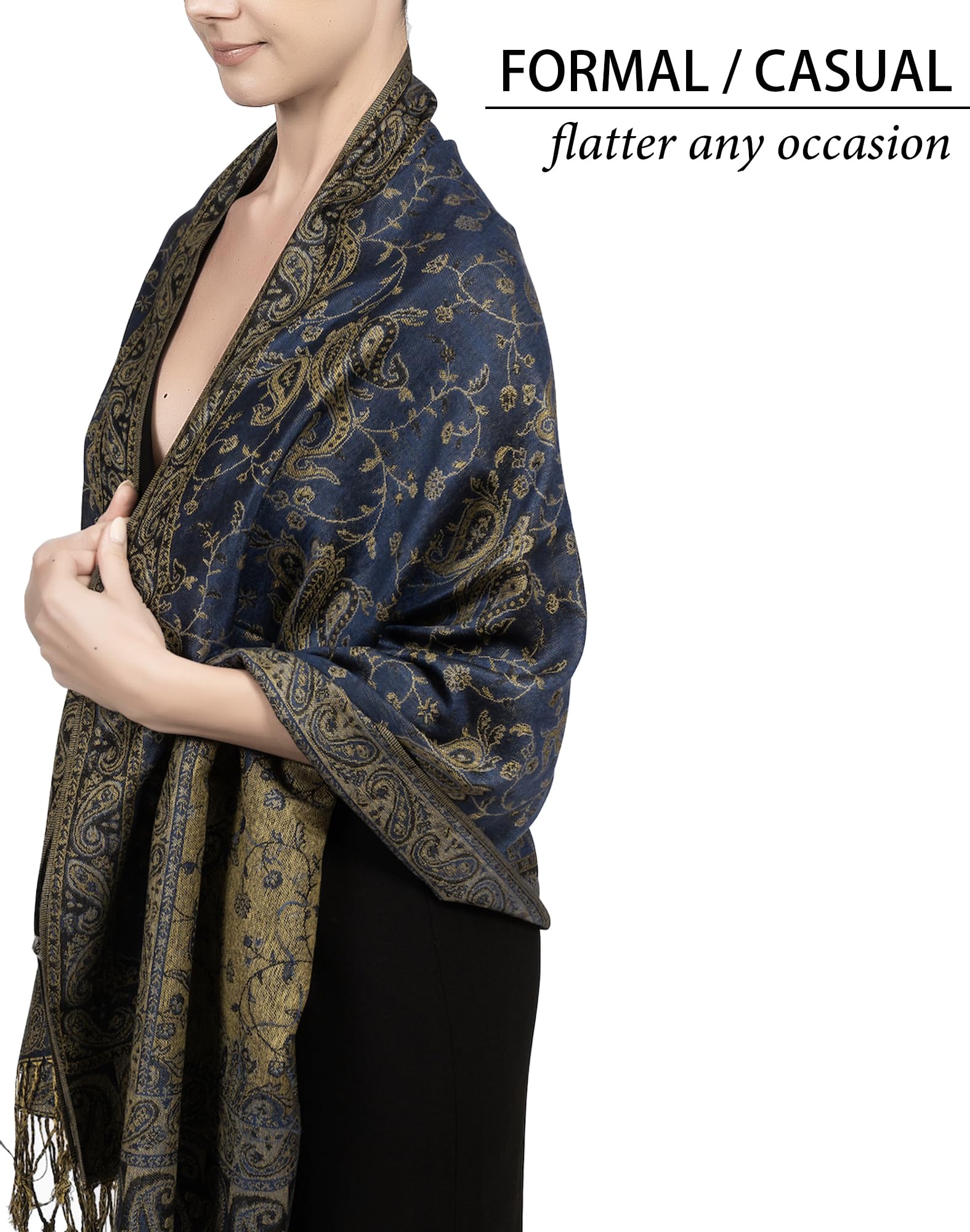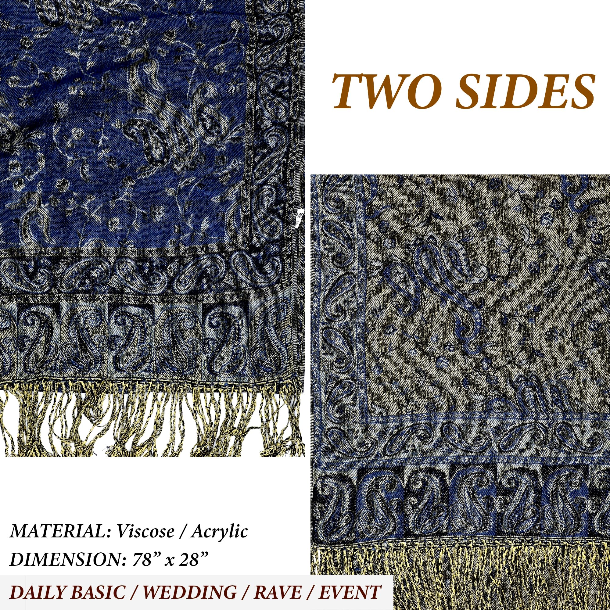 ✔️ Exotic Tapestry Look with Reversible Design – This reversible paisley shawl wrap for women features two beautiful color tones in one piece. It complements everything from evening gowns to rave outfits for men and women, offering vibrant style with graceful comfort.