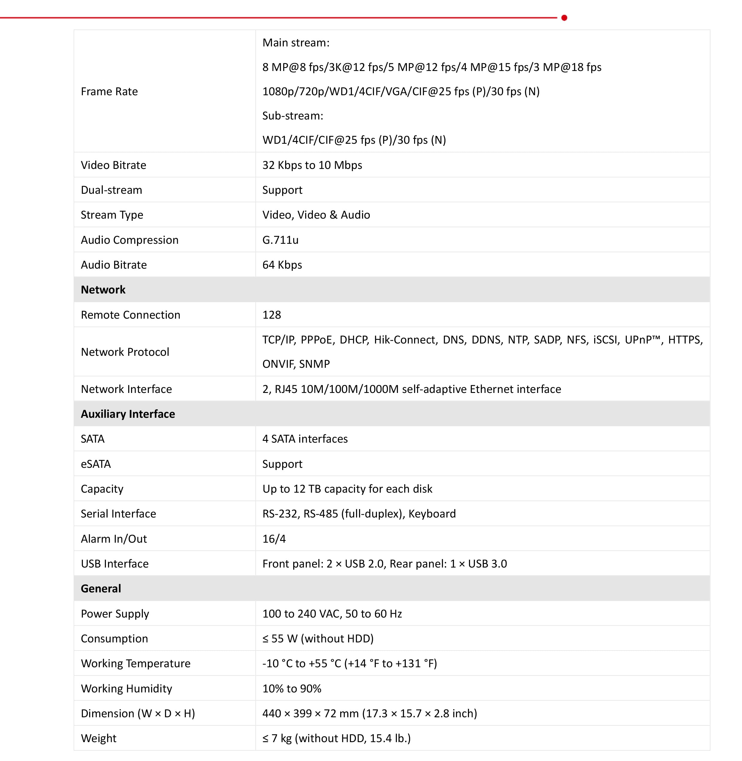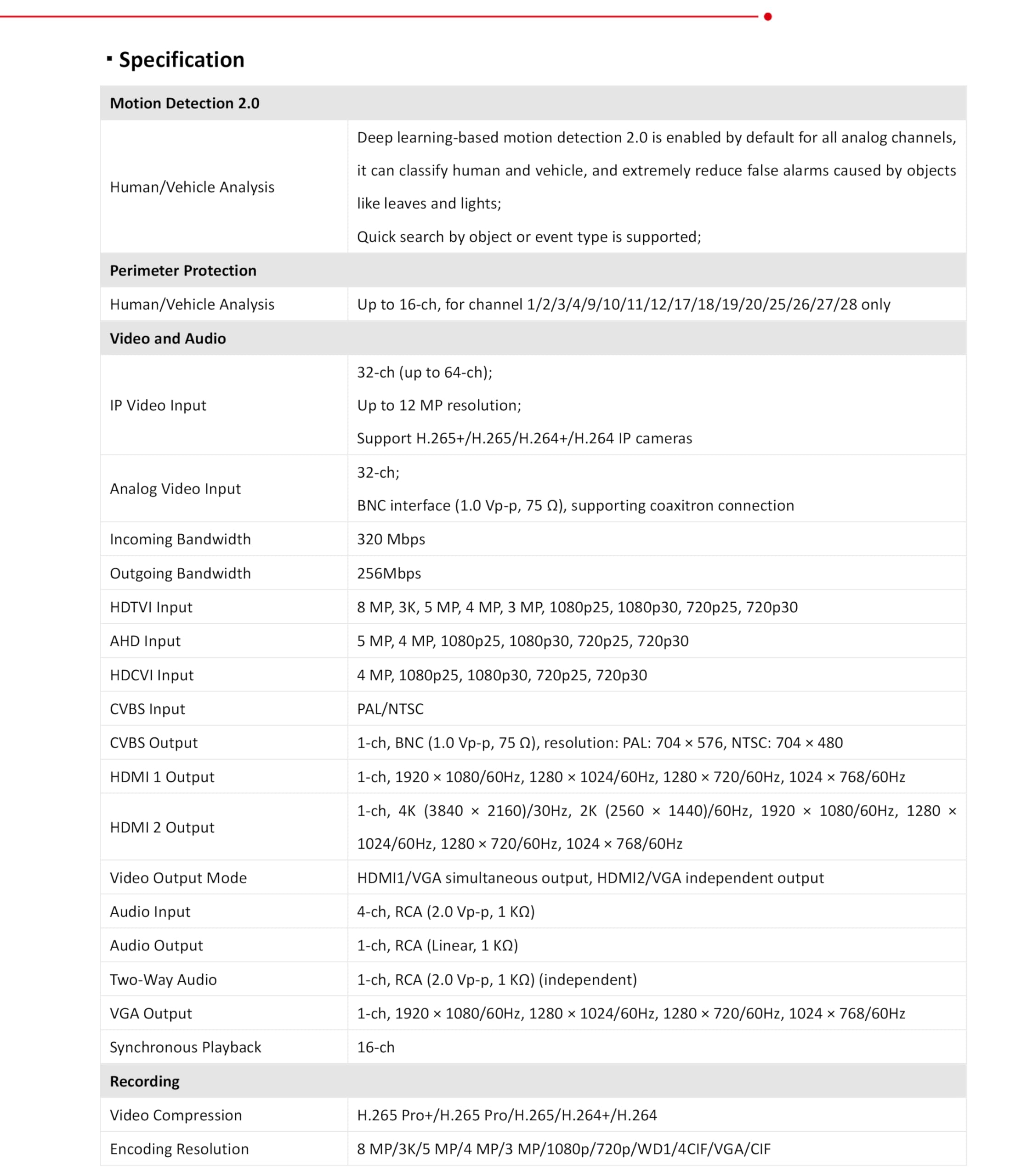 Up to 32-ch analog camera inputs and 4 SATA interfaces, 1 eSATA