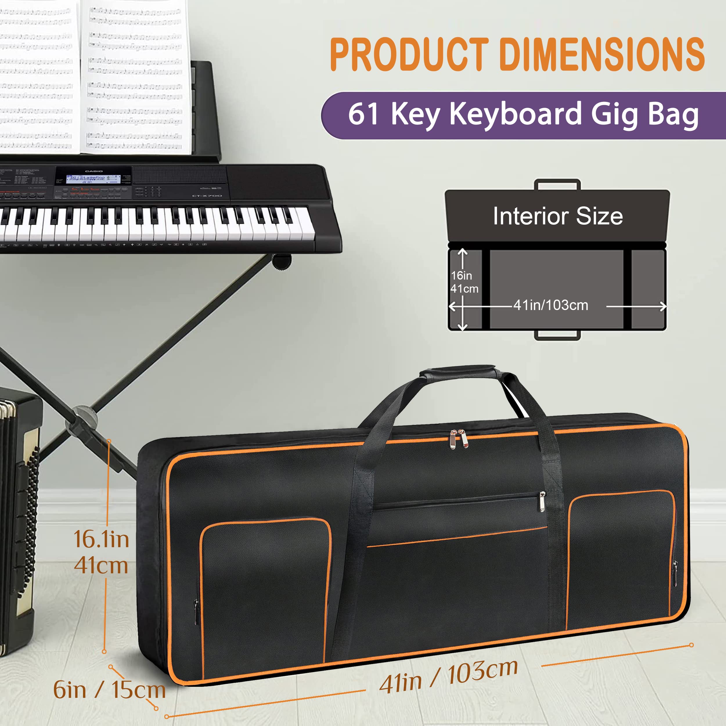 Black Keyboard Case,40"*16"*6" Inch, Fits Most 61 Key Keyboard.