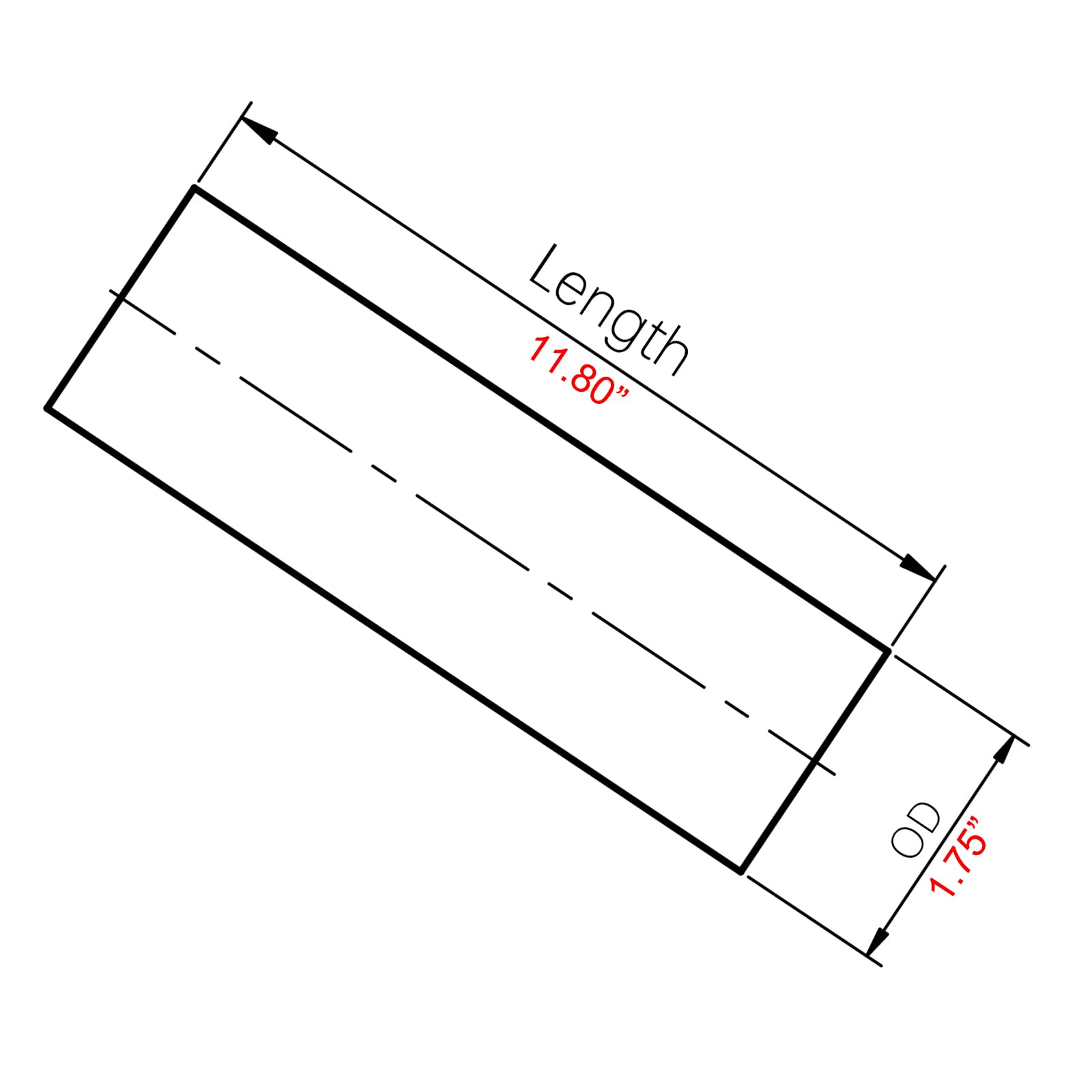 Straight, outside diameter: 1.75" (45mm), length: 11.8" (300mm), wall thickness: 0.059" (1.5mm)