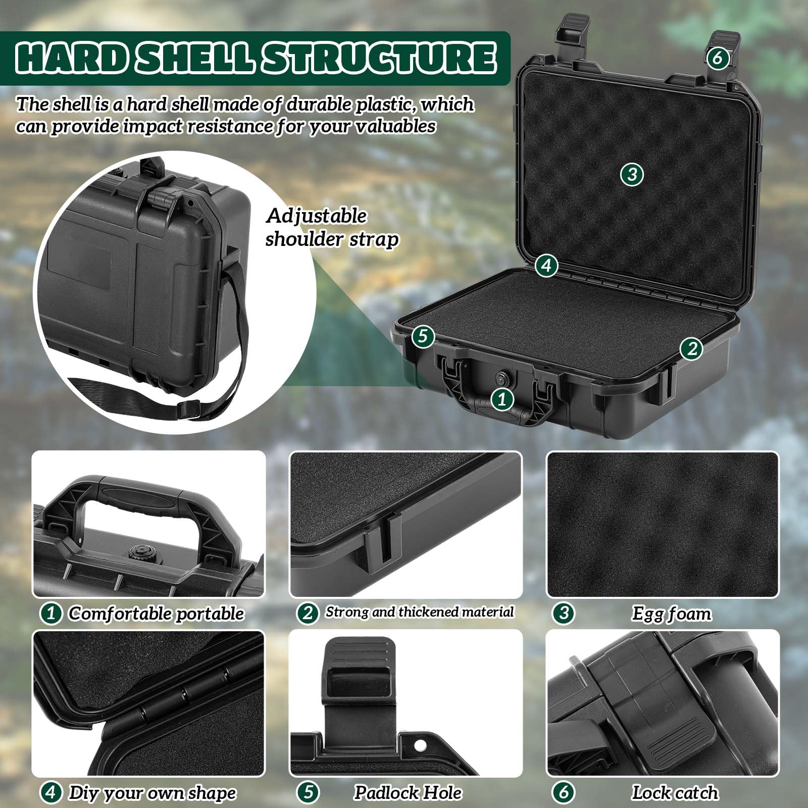 Lightweight and Comfortable Portability: transport is a breeze with this lightweight case featuring a comfortable carry handle and a detachable shoulder strap; Whether you're heading into harsh environments or daily commutes, the design ensures ease of carrying without sacrificing protection for your valuables