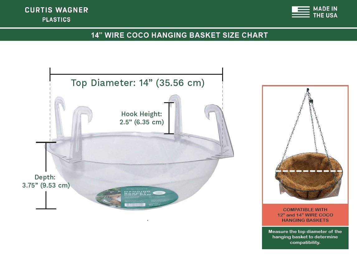MADE IN THE USA: Curtis Wagner Plastics has been crafting high-quality plant care solutions in Houston, Texas for decades. These hanging basket drip pans are made with safe, durable materials designed to protect your plants and your home.