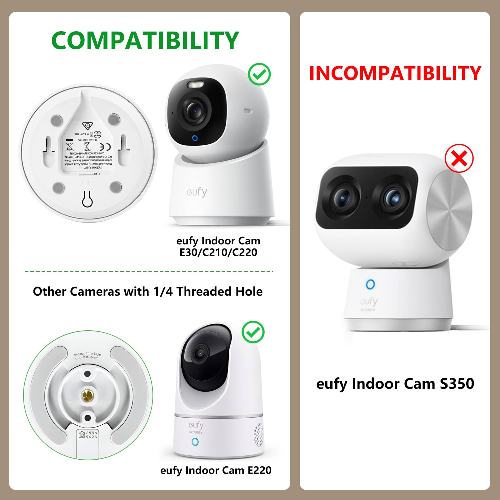 Compatibility: This security camera mount specifically designed for eufy Indoor Cam E30/C210/C220/E220, and other eufy cameras with 1/4 threaded hole