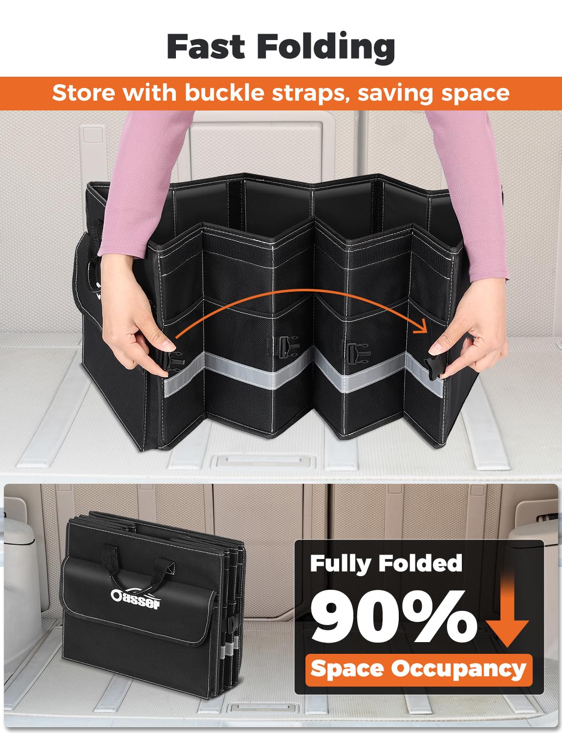 Warning Effect: The reflective band provide extra visibility and safety during a load and unload the cars box at night; get the oasser car trunk organizer and start to enjoy your clean and tidy car