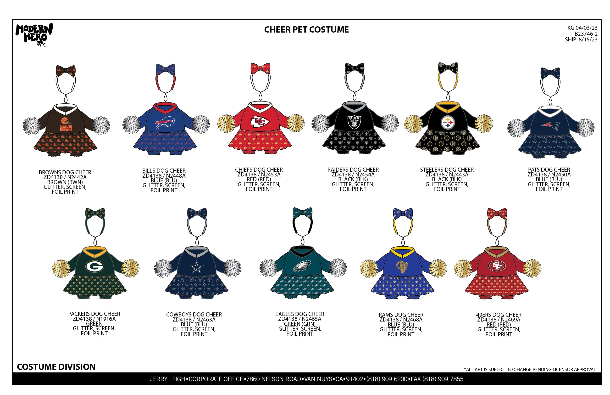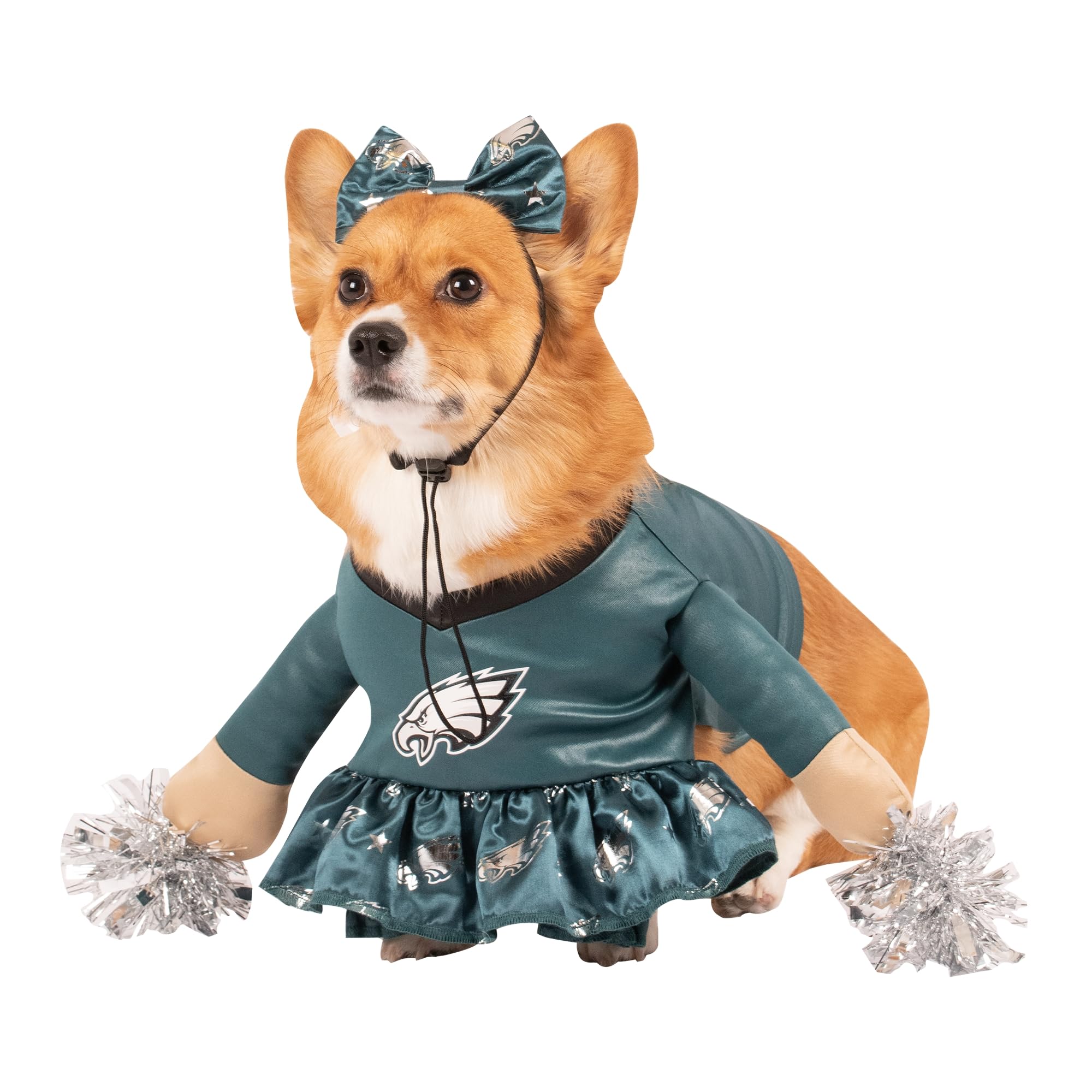 Officially Licensed NFL Cheerleader Dress. The dress is made of soft polyester fabric that won't cause any discomfort to your pet. It is carefully tailored to provide a snug yet flexible fit for dogs of all shapes and sizes.