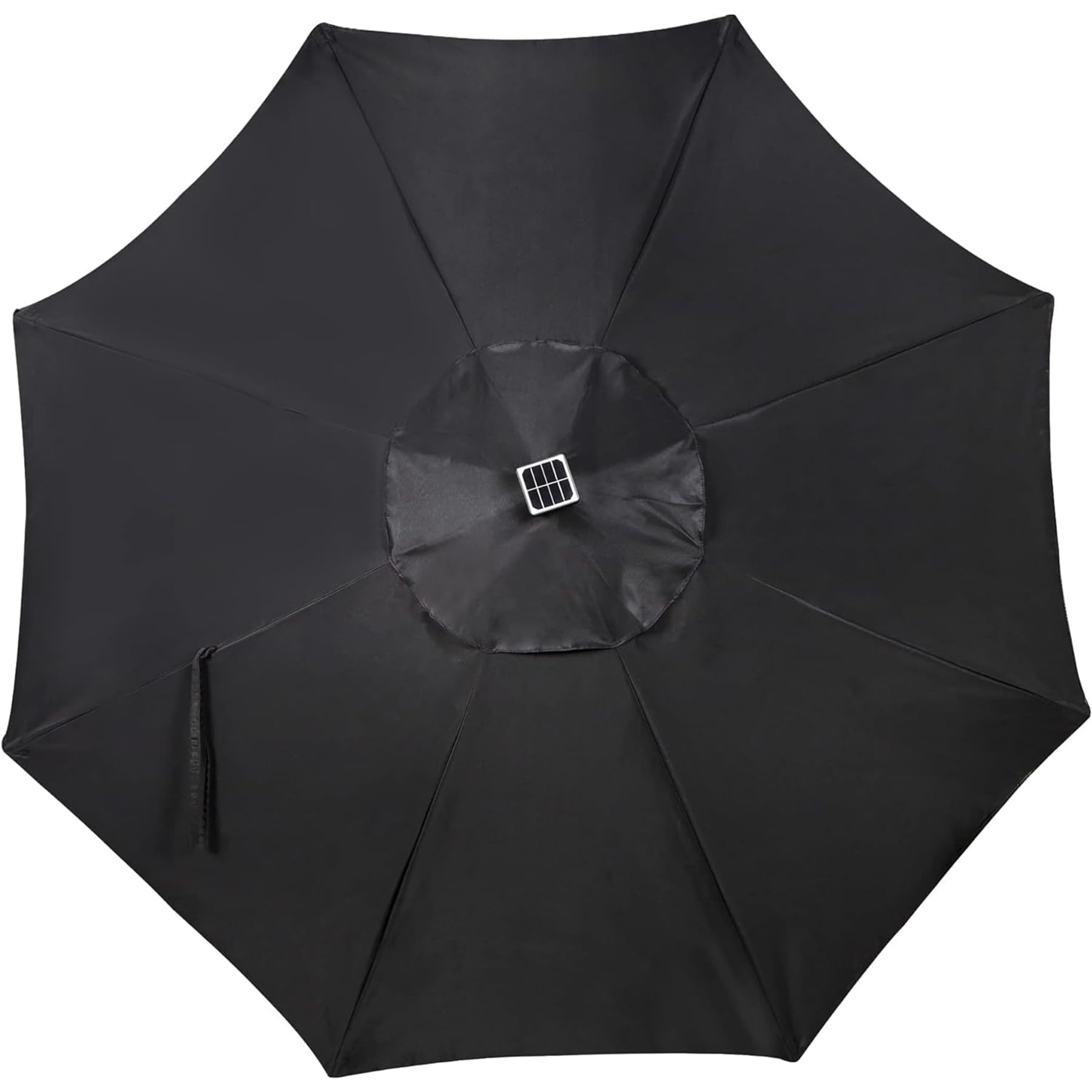 [Energy-Efficient Lighting] 4 LED lights on each rib, 8 iron rib construction, solar-powered 32 LEDs provide energy-efficient lighting, help to light up relaxing night and create warm atmosphere. Overall Dimensions: 108"(Dia) x 98.4"(H); Dia.1.50 inch (38 mm) pole for stronger support (NOTE: Umbrella BASE NOT Included)