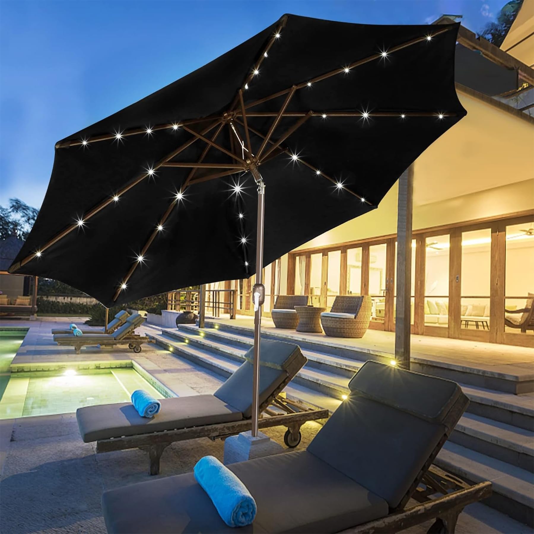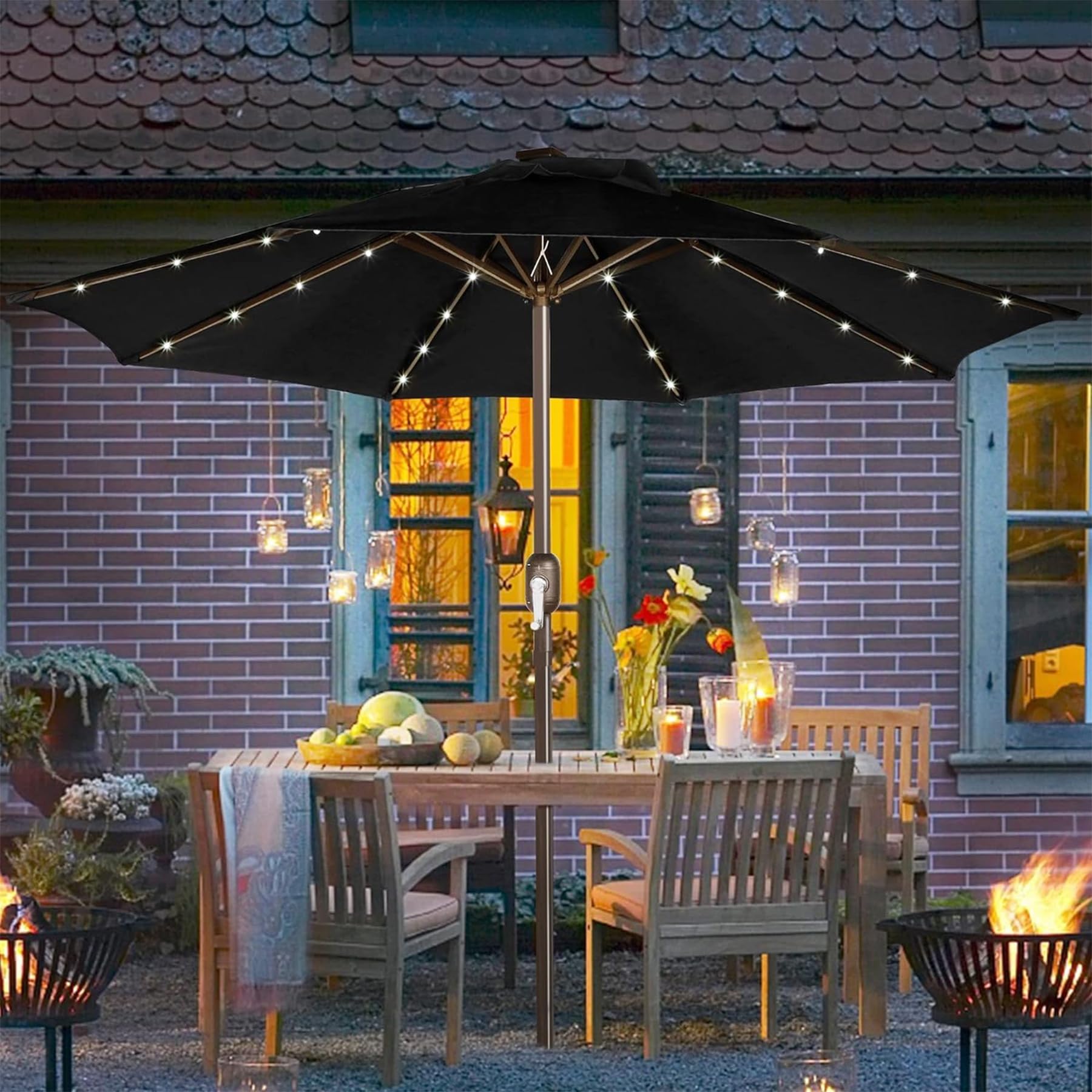 [Entertain day and nights] Solar powered LED lights brighten up an evening gathering, while the umbrella keeps you shaded as you enjoy daytime drinks with your friends. NOTE: When used as free standing umbrella, it needs over 26.5lb (12KG) patio umbrella base. Umbrella base not included in the package.