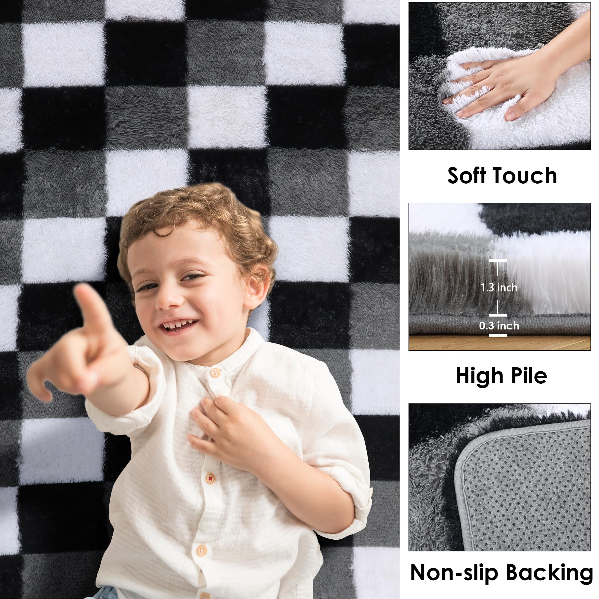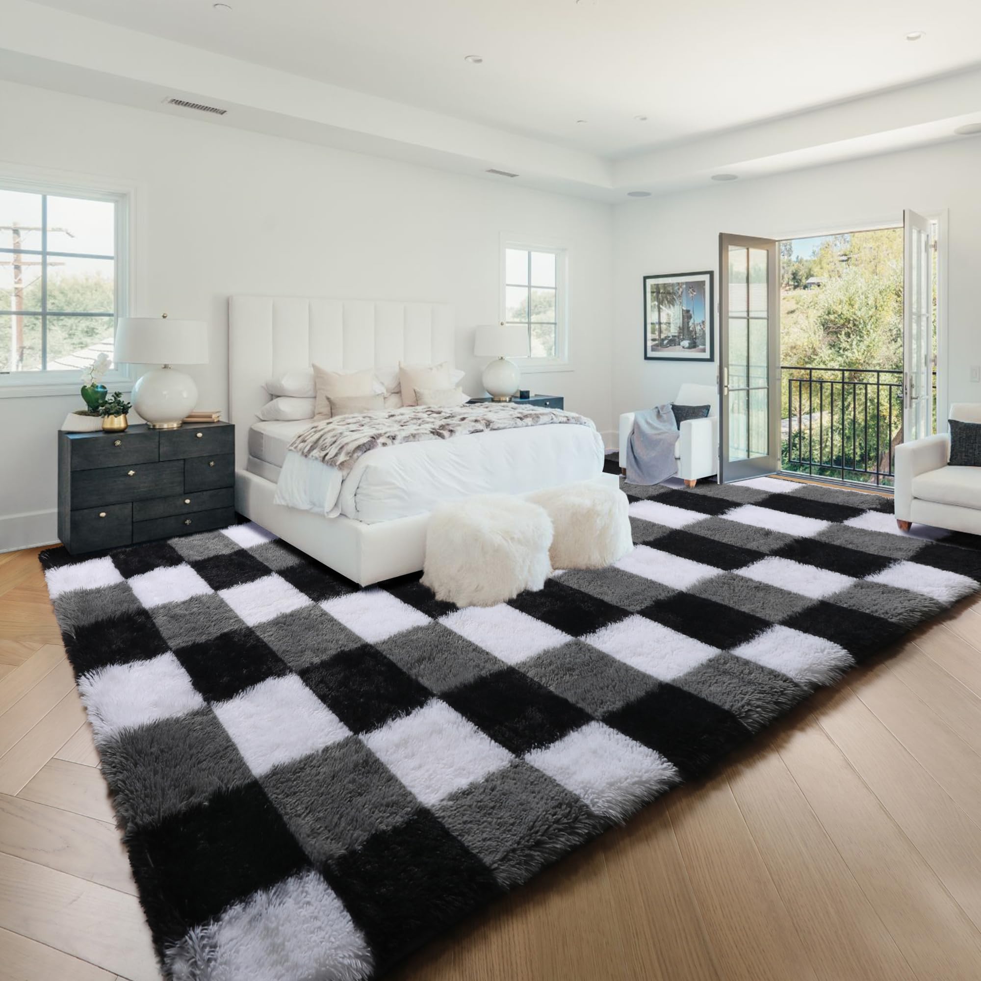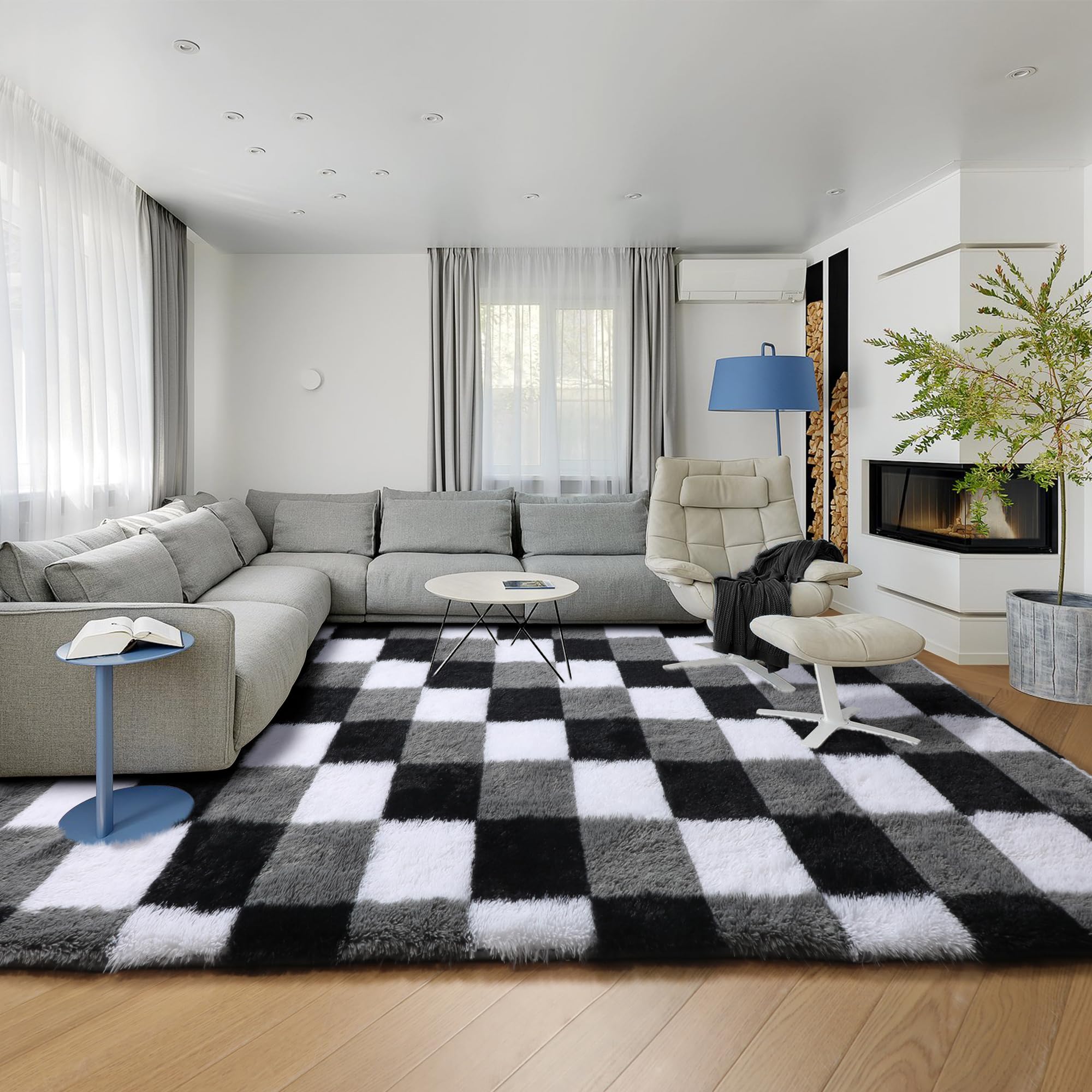 Modern Design -- KICMOR black white grey rug design is inspired by Checkerboard (date back to the 15th mid-century). It is a classic style that never goes out, suitable for creating aesthetic and elevate your space, adding a touch of personality to your room and impress your guests.