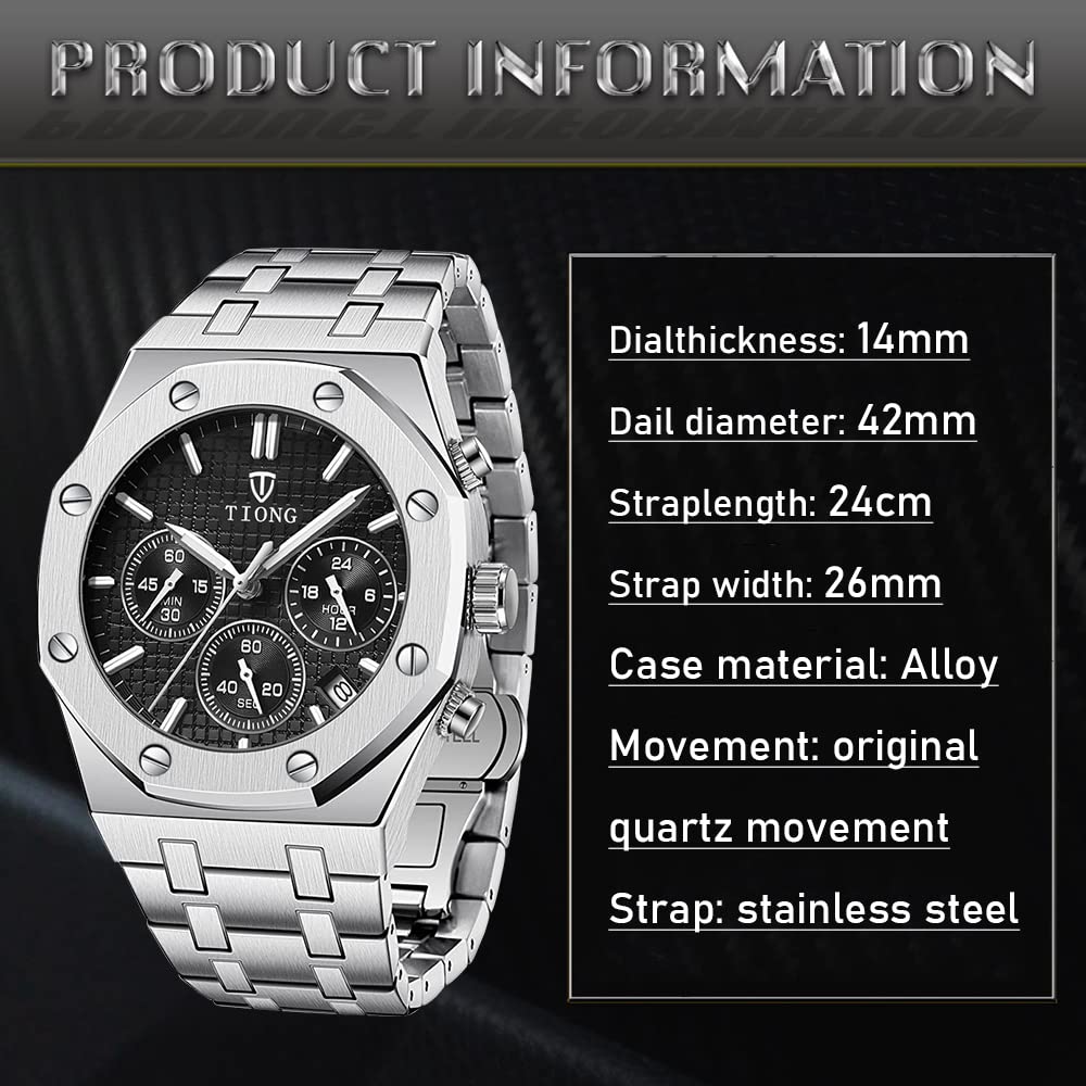 ★Multifunction Design★: Three multifunction sub-dials support stopwatch and date calendar,Japanese quartz movement and battery provide accurate time keeping.The watch can be used for more than 1-3 years.