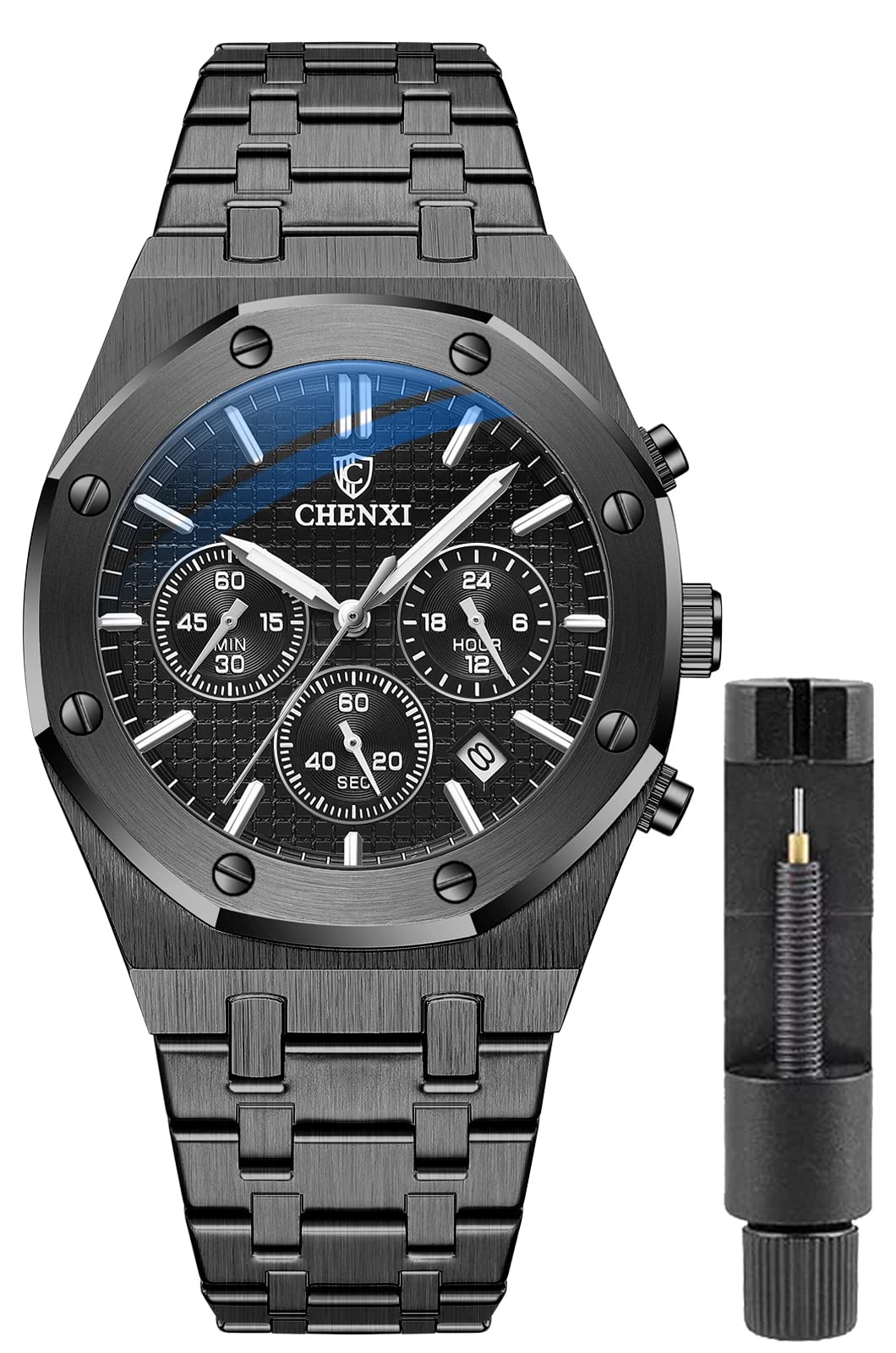 ★Stainless Steel Band★: Durable and comfortable stainless steel band fits to daily wear.IP plating watch case and watch band will never fade.stainless steel watch is equipped with a link remover