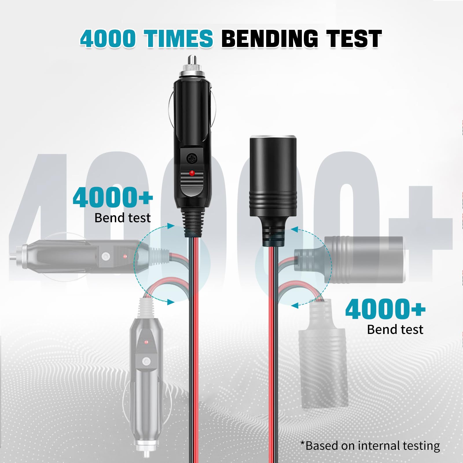 PVC Fireproof Material Shell & designed with a frosted surface, durable, and resistant to high temperatures of 220 degrees. This heavy-duty lighter extension cable uses SPT-2 16AWG pure copper UL certified wires to provide stable current for your equipment.