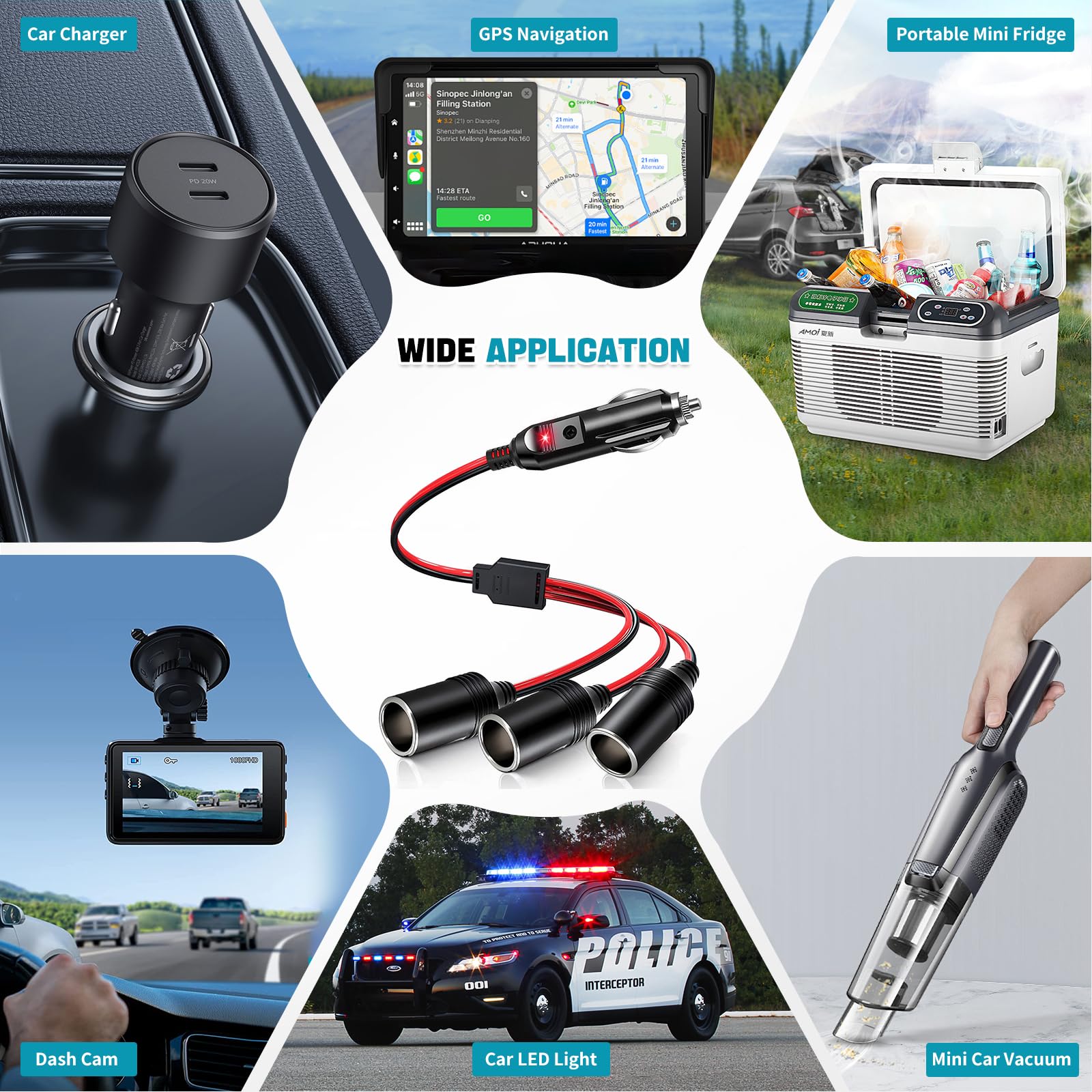 240W Cigarette Lighter Adapter & The 1 to 3 cigarette lighter adapter create more car's power ports for you. This 12 volt/24 volt car power splitter adapter perfectly fit for your GPS, dash cam, backup camera, portable mini fridge, mini car vacuum, usb car charger and other car products. Widely used in car, RV, truck, boat, travel trailer, pickup, van while traveling. Meet your needs for more car cigarette lighter power ports.