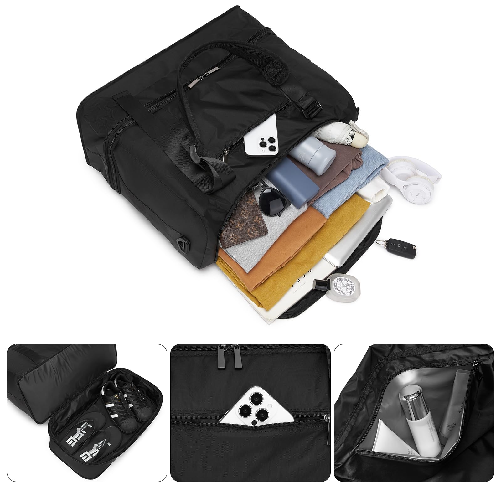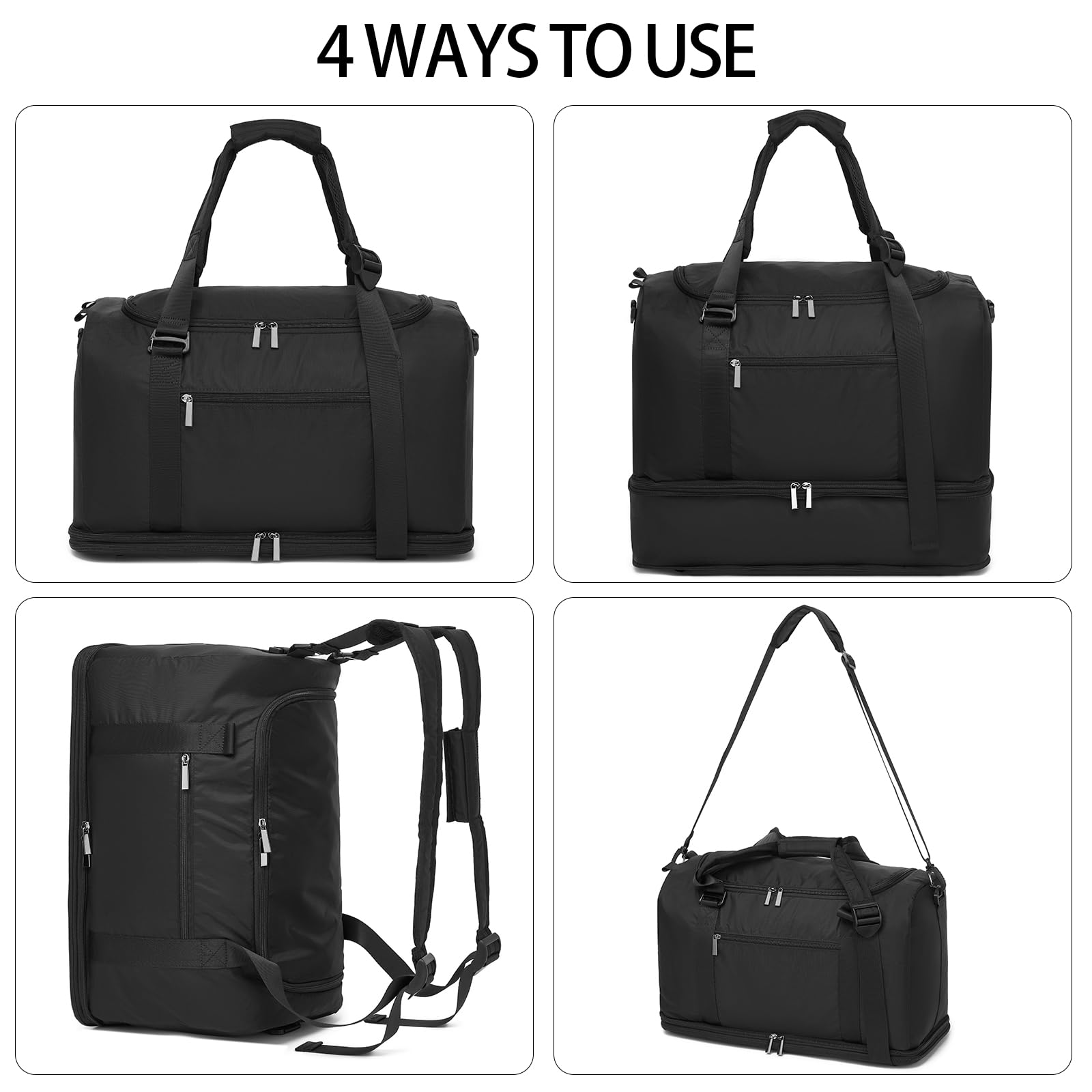 Spacious Foldable Travel Bag:Packing made simple! This 19.7”x9.4”x11.4” carry on duffel bag expands to 19.7”x9.4”x15.4”, fitting gym gear, outfits, and travel must-haves. Use it as a carry-on weekender bag for business trips, camping gear hauler, or overnight backpack—roomy enough for 3-4 days yet compact for overhead bins