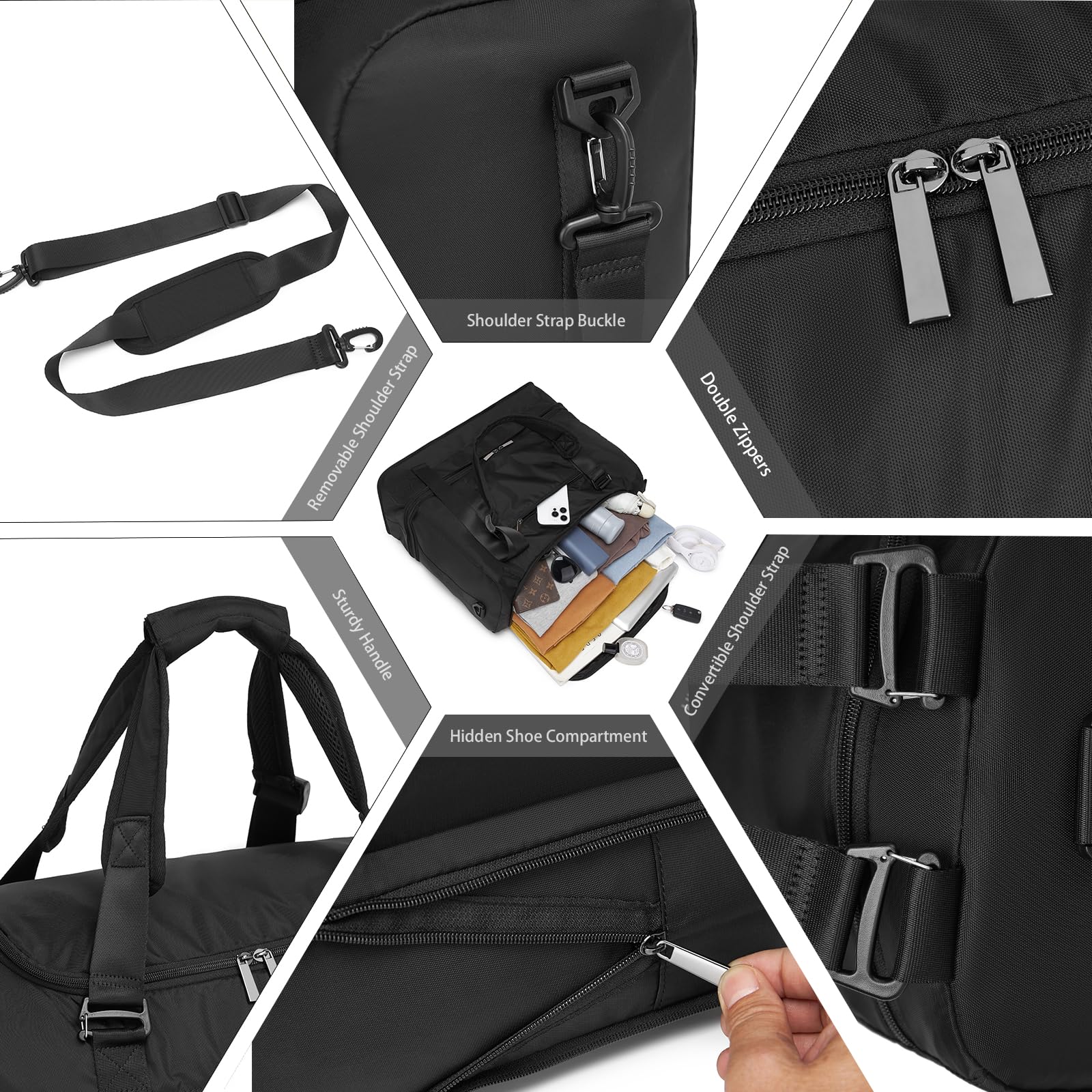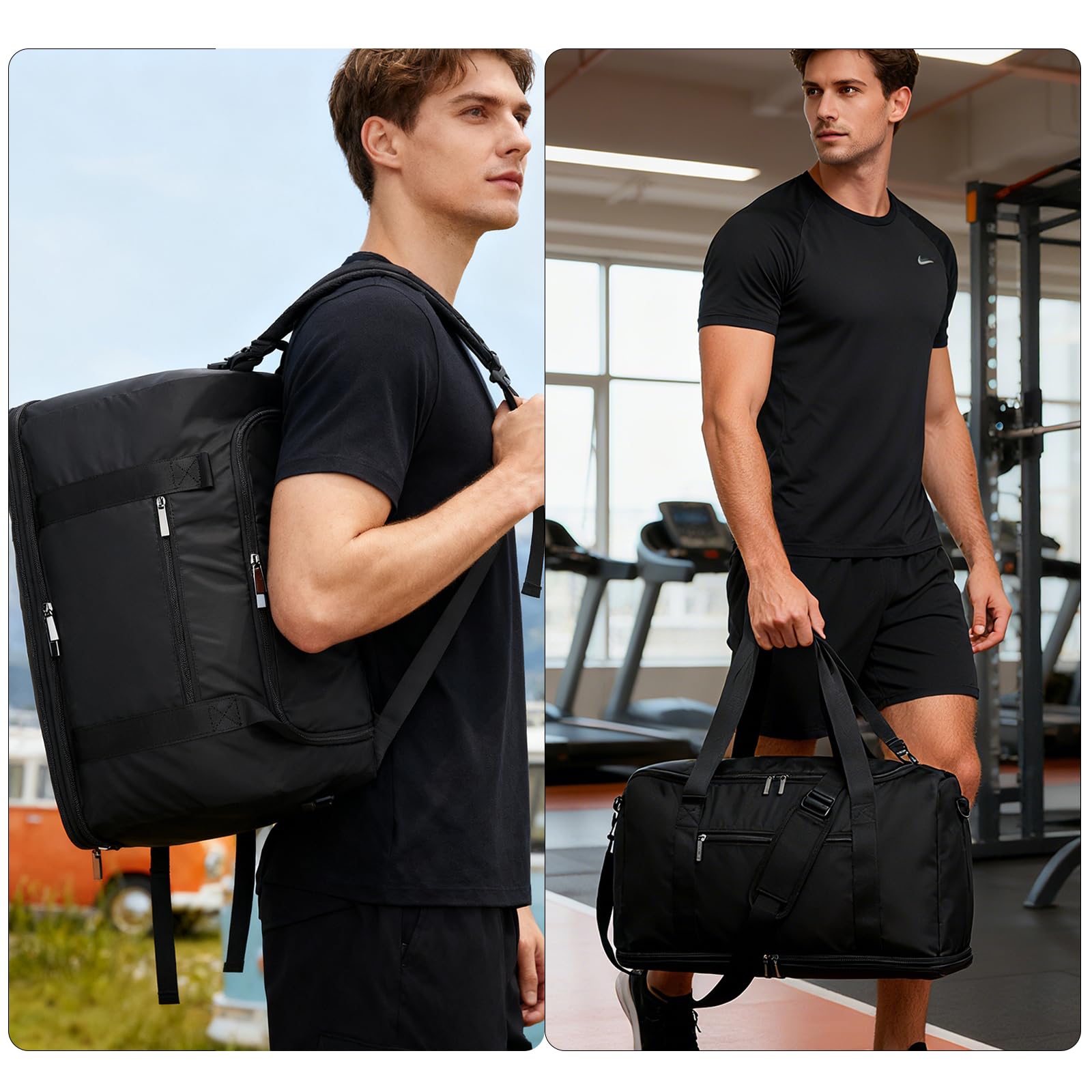 Rugged Sports Duffel Bag:Built to endure! Crafted from tear-resistant Oxford fabric and reinforced stitching, this mens overnight bag shrugs off rain, rough handling, or gym floor drops. Heavy-duty zippers and padded straps ensure durability whether you’re hiking trails or rushing through terminals
