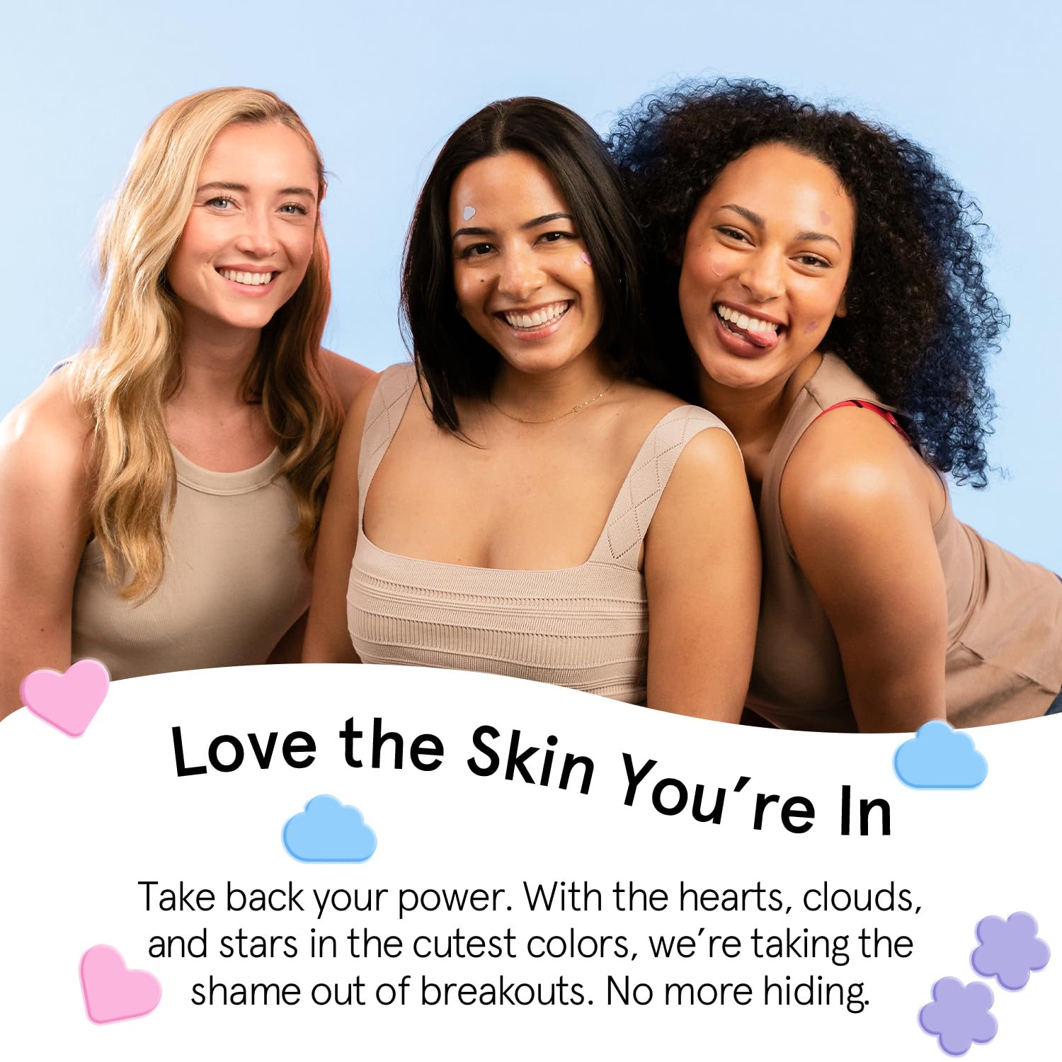 Your Whitehead Warriors: Who says blemish patches can't be cute? Our zit patches for face come in pink hearts, purple flowers, and blue cloud shapes. They shield spots from outside nasties and serve as an important reminder to avoid skin-picking.