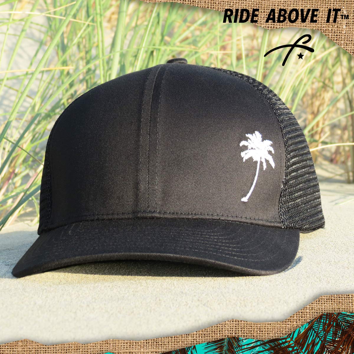 PALM TREE HAT- Look cool in this Hawaiian trucker hat with palm tree design. Whether going for a surf at the beach or chillin on the streets!