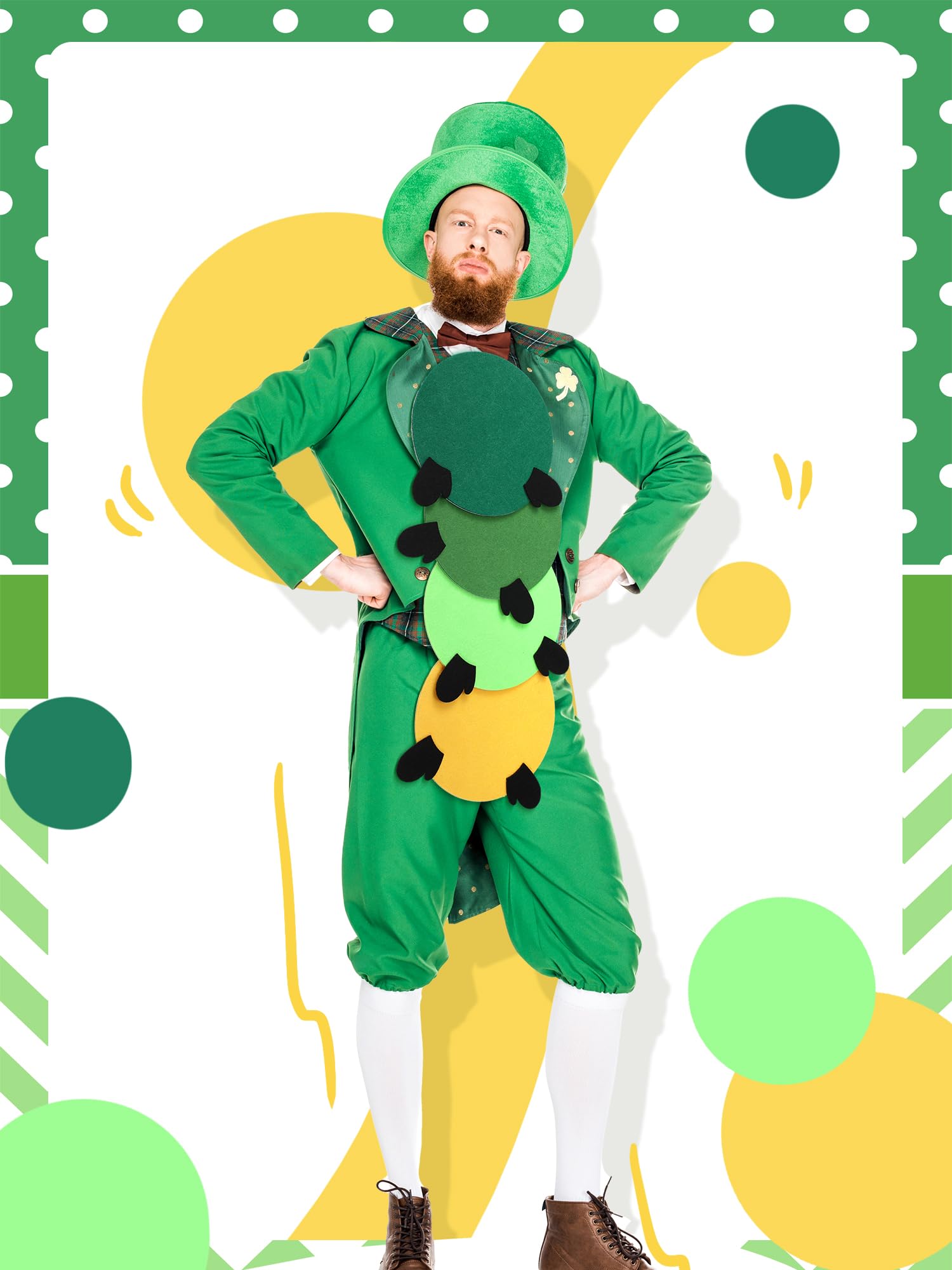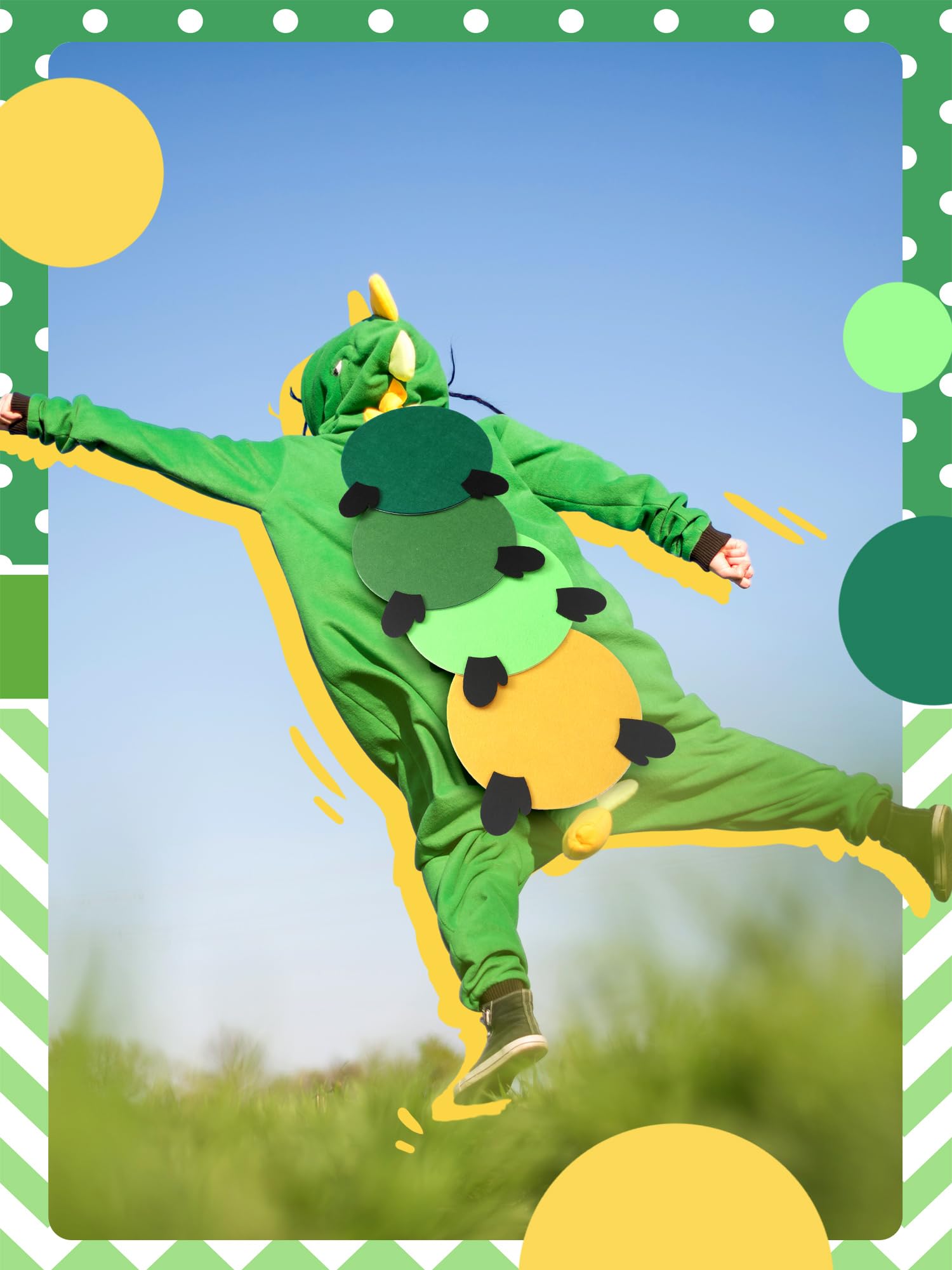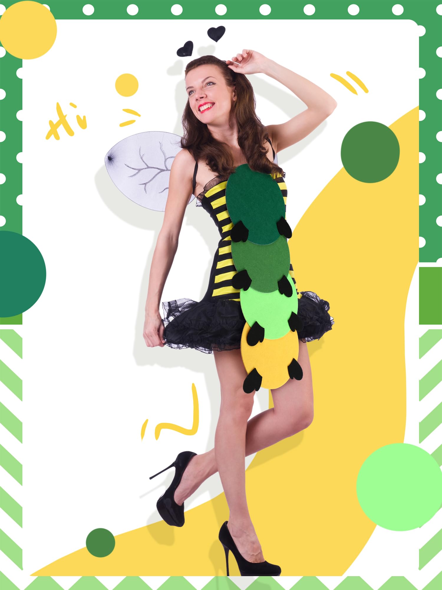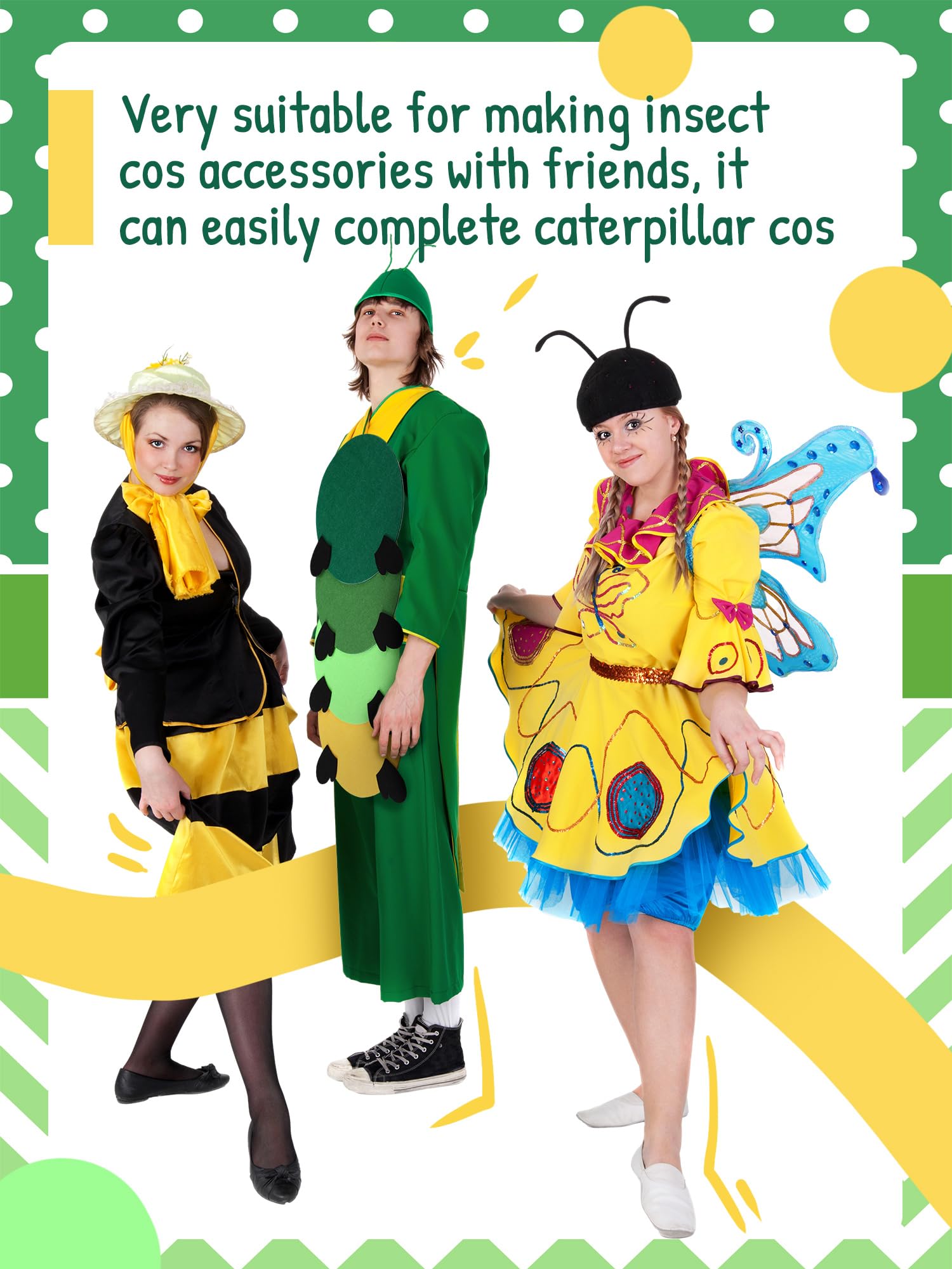 Halloween Caterpillar Costume: you will receive a set of caterpillar costume consisting of green, light green, grass green, and yellow circles, paired with four pairs of insect feet, instantly transforming ordinary clothing into cute caterpillars, nice for Halloween costumes or themed decorations