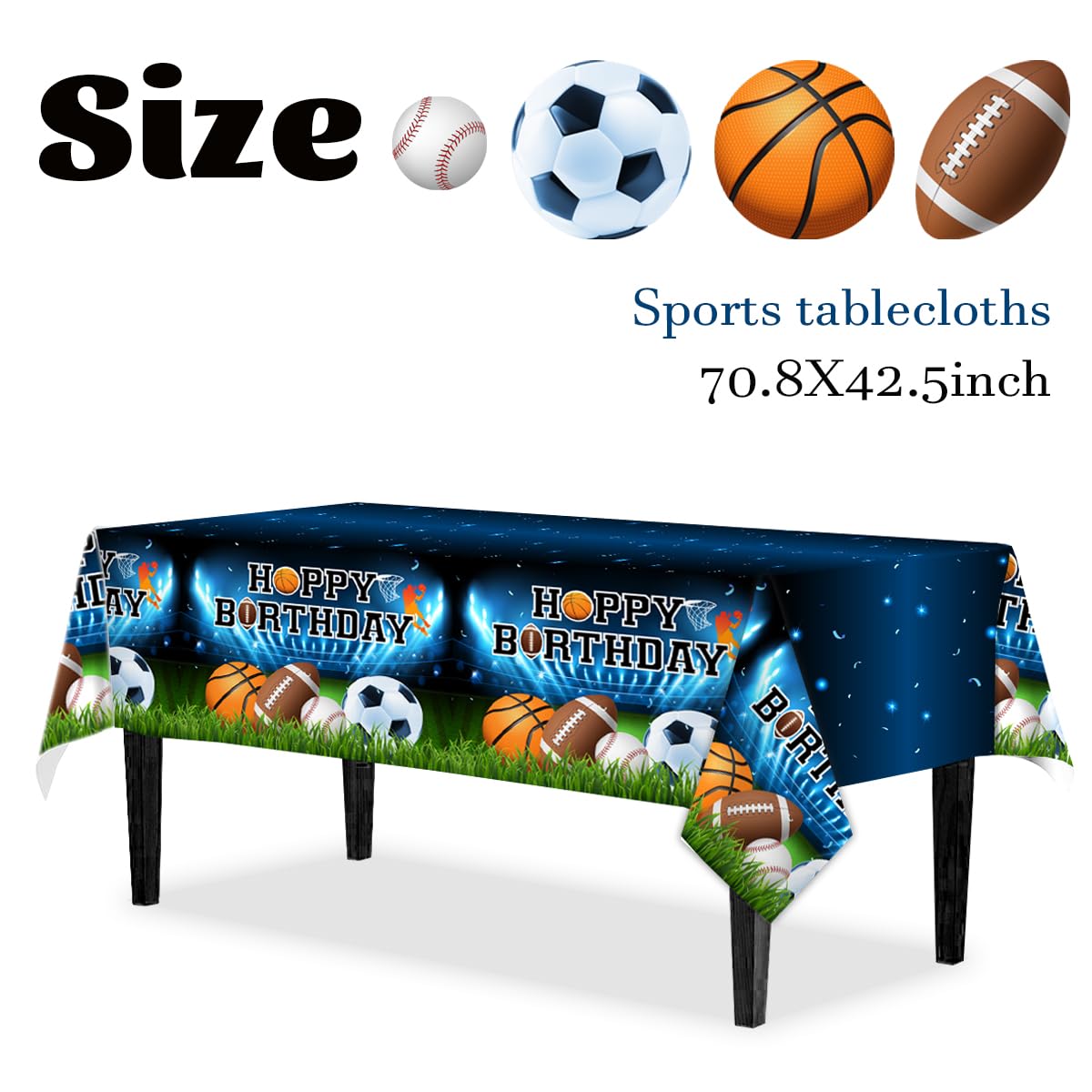 šćSPORTćYou will get plastic tablecloth that are both beautiful and functional! Package includes 3 pieces sports theme tablecloths,the size of each piece is 70.8X42.5inch.it is a great disposable table cover for your party.