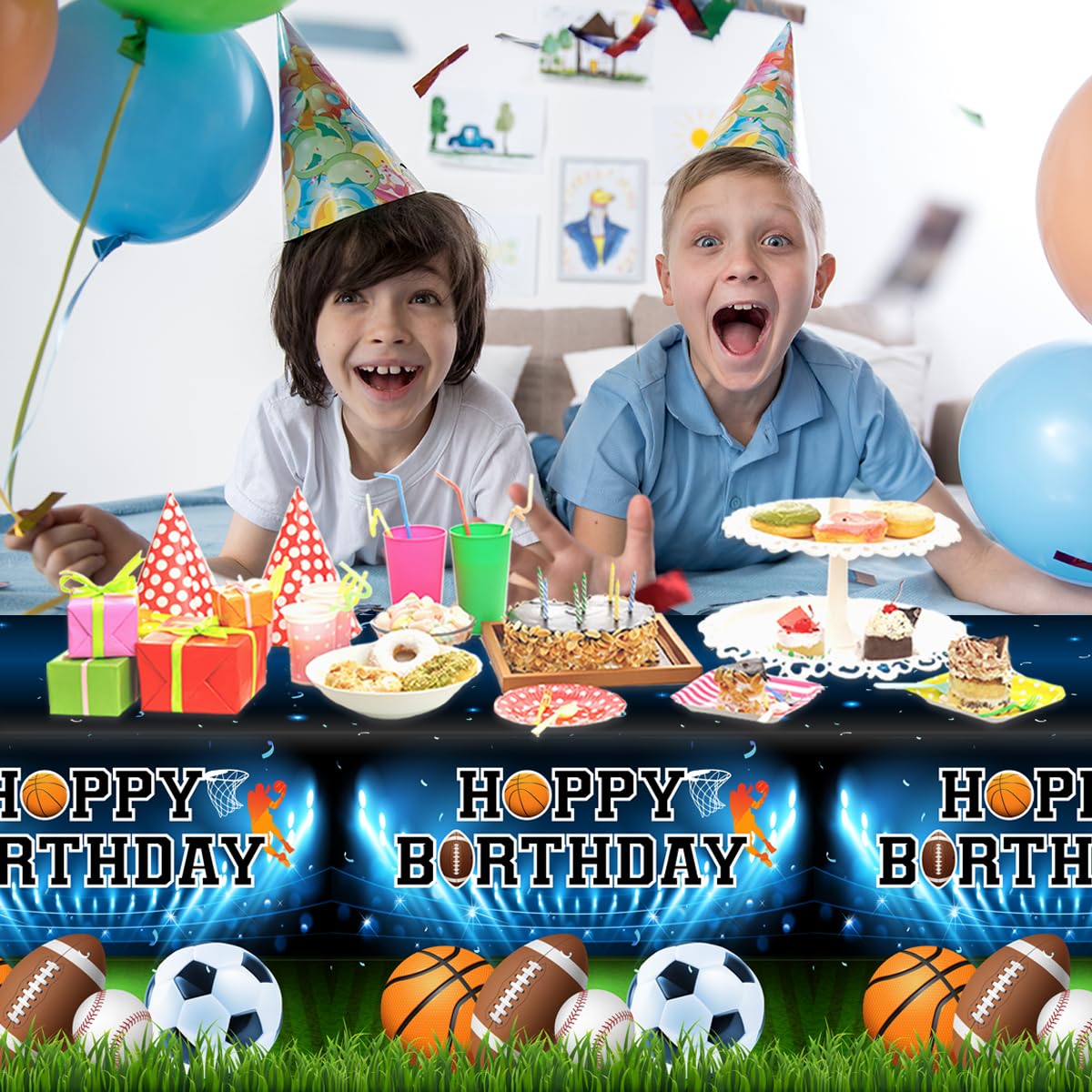 ā¾ćUNIQUEćCarefully designed classic four ball games, basketball, football, baseball, and soccer.āhappy birthdayā is clearly printed on tablecloth.Special design will attract people's attention,perfect as party supplies for sports fans.