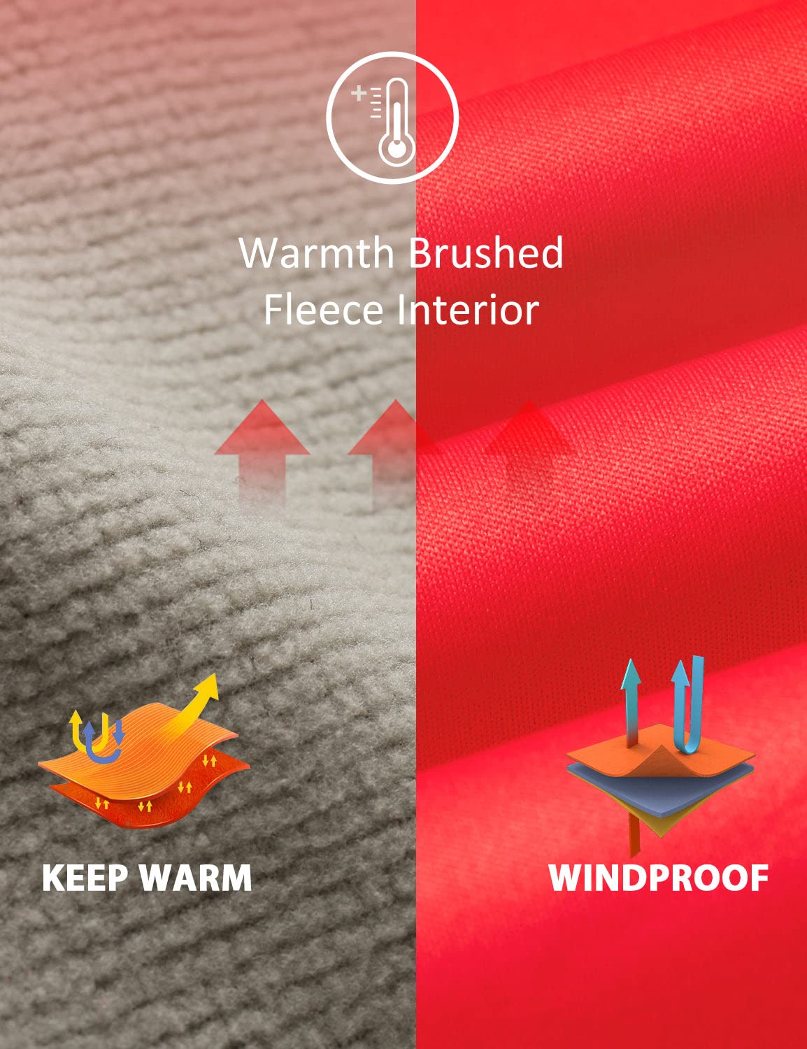 Windproof& Warm: 3-layer insulation composed, the top layer on the exterior is a windproof surface,the second layer is a breathable membrane film, and the third layer is a nice soft warm fleece, keep you warm without overheating.