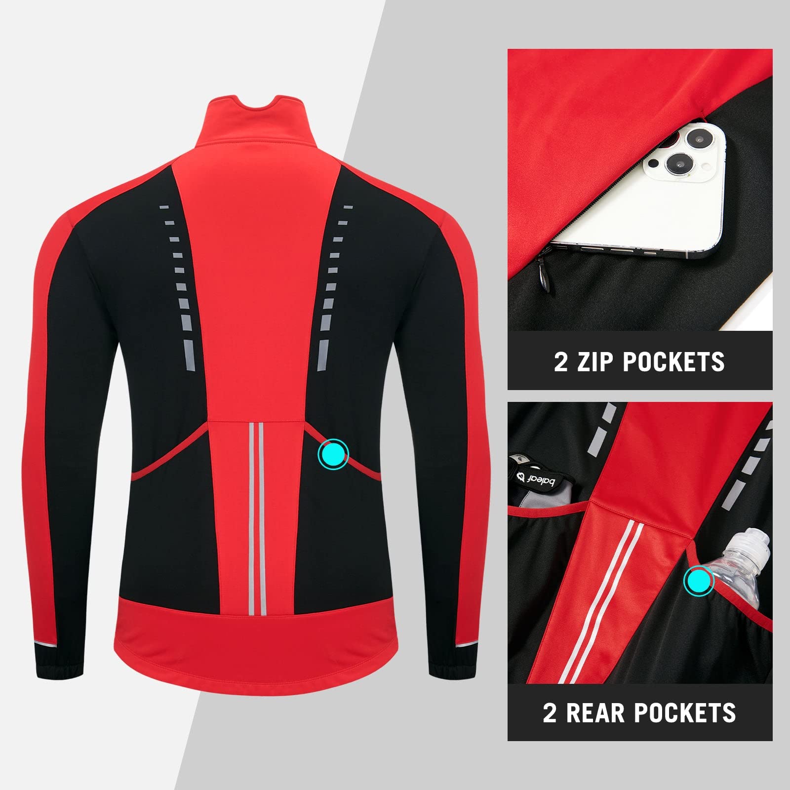 Breathable & Security: This means winter jacket with two zippered chest vents increases ventilation. Reflective elements in the chest, elbow, back and back pocket enhance visibility in low light, improving the safety of outdoor sports.