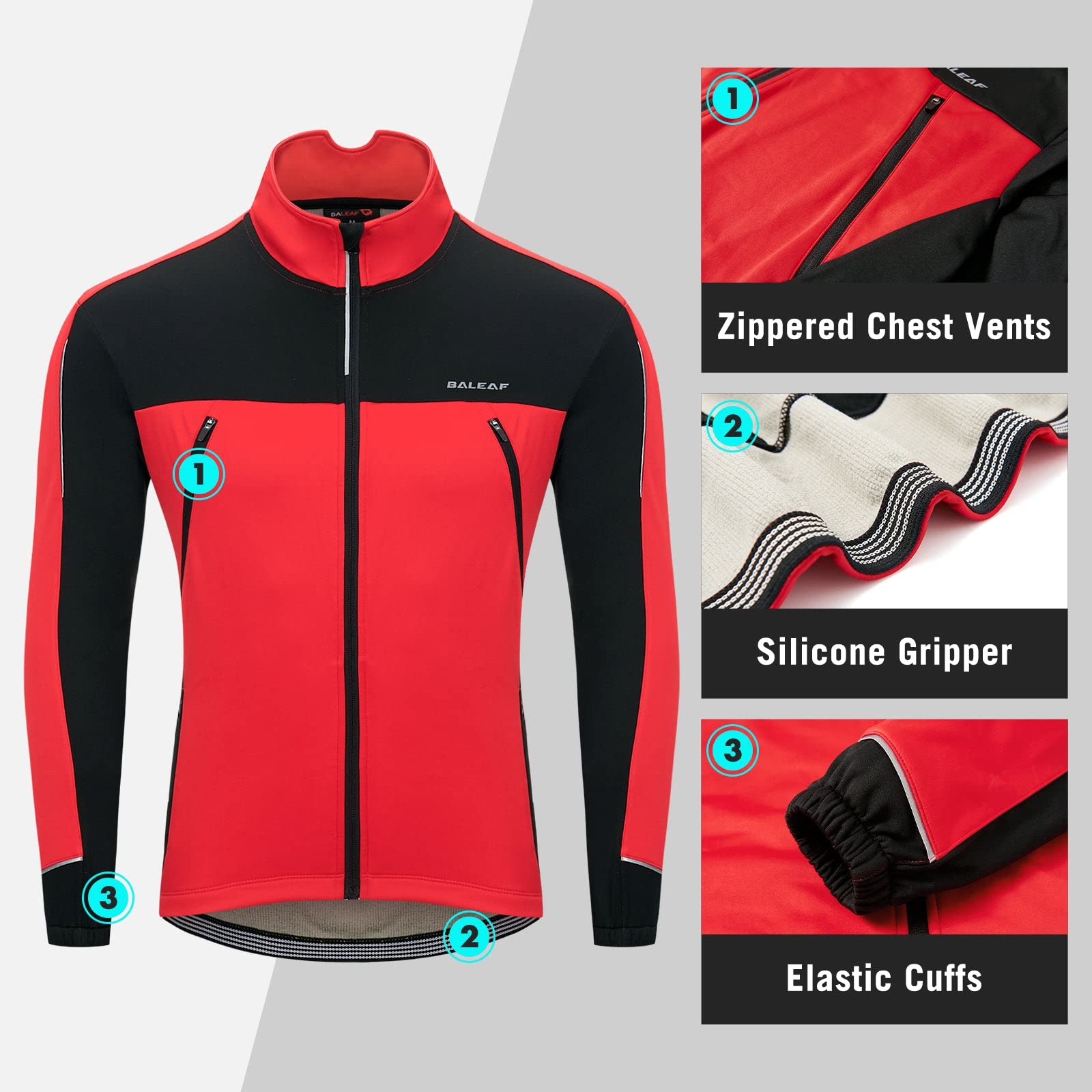 Special Designs: A high collar keeps the wind and chills out, the drop-tail rear hem protects against road spray on wet days. With a silicone gripper on the bottom holds the jacket in place. LEFT zipper design for US.