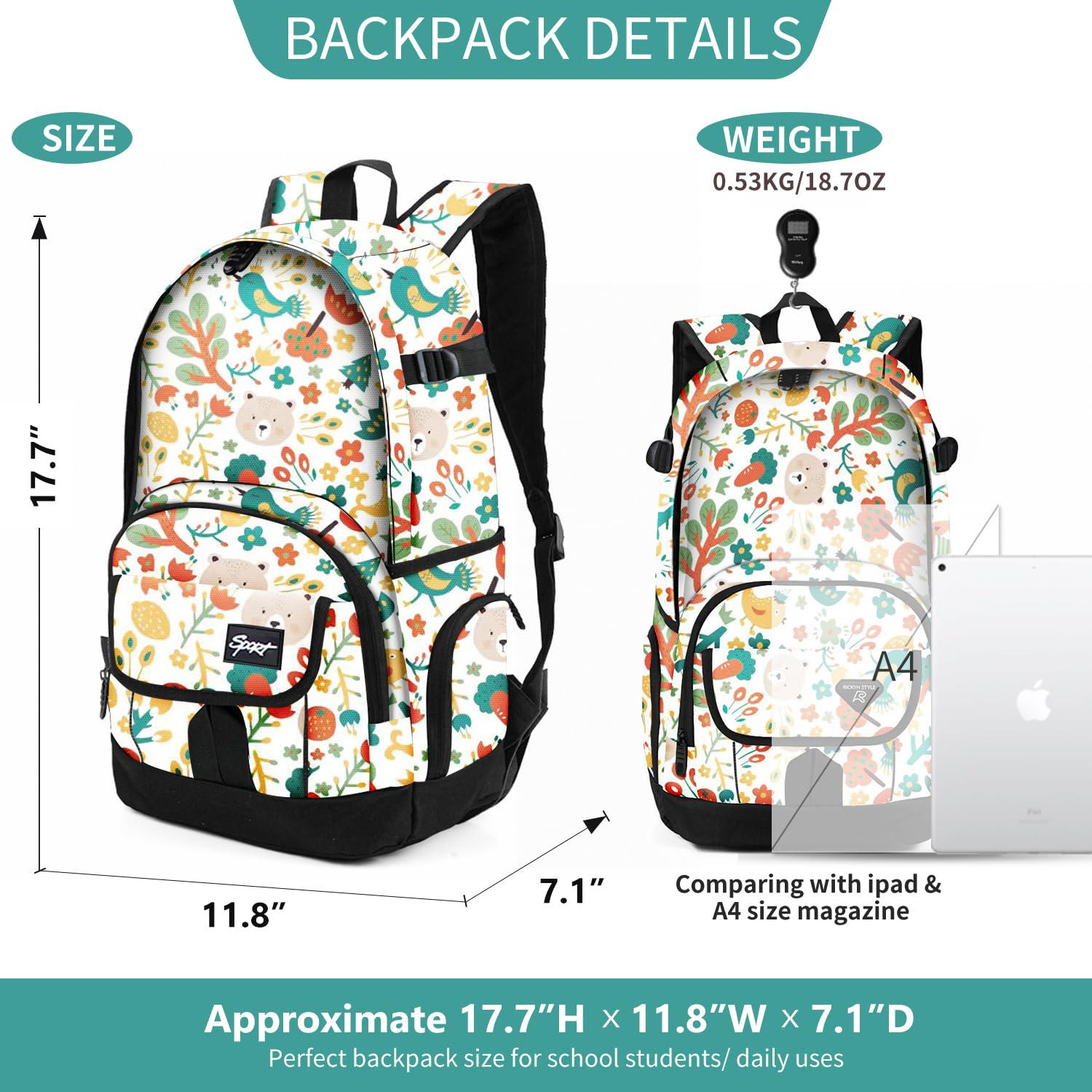✓ROOMY IN STYLE—Chic graffiti prints design with spacious main compartment holds up to 25L/20pounds