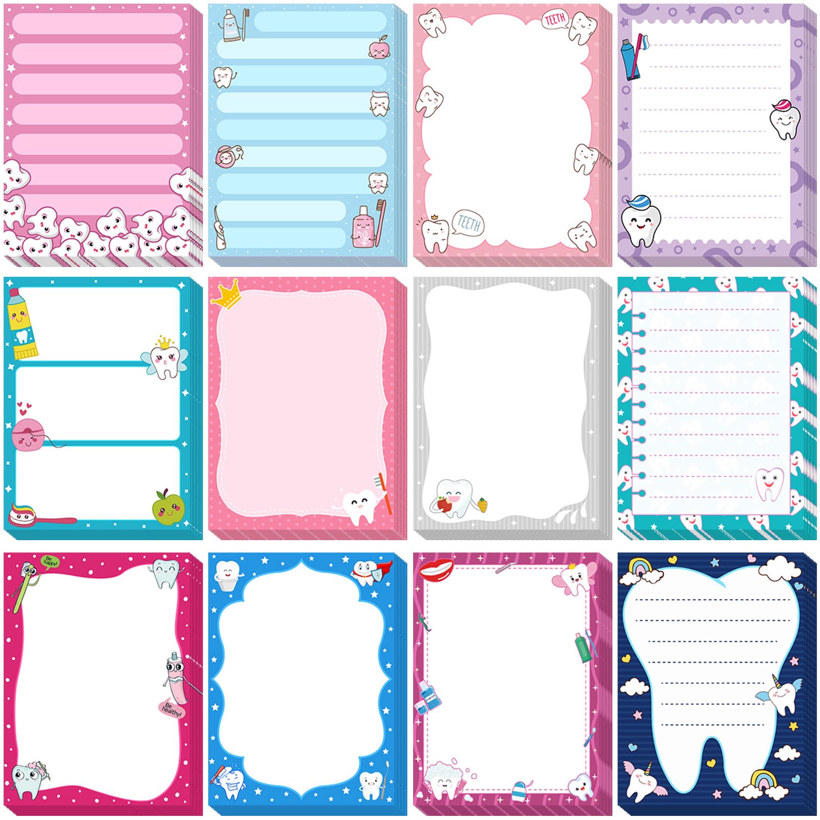 Cute Cartoon Tooth Theme Designs: our dental notepads come in a variety of styles, featuring different cute cartoon tooth designs; They'll add a festive touch to your parties and bring fun to your work and life