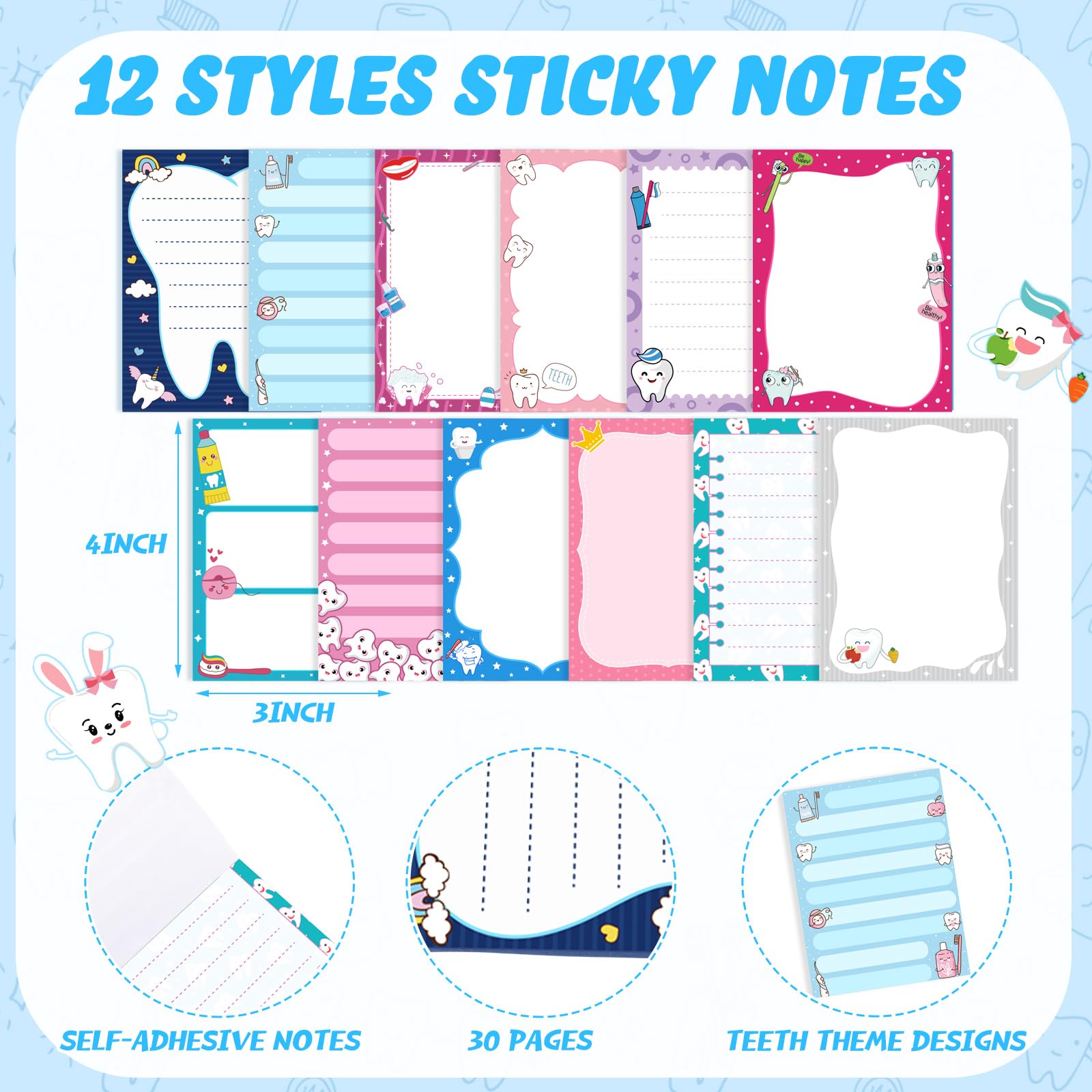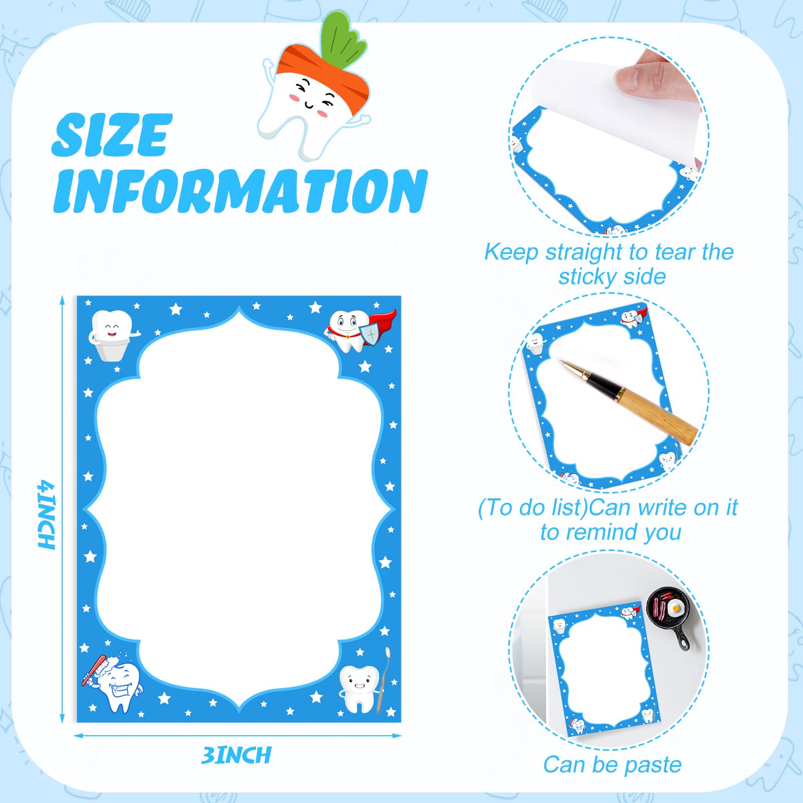 Sufficient Quantity: you will receive 12 pieces of dentist sticky notes, packaged with 30 pages each, for a total of 360 sheets; The dimensions are a handy 3x4 inches /7.6x10 cm, It is sufficient to meet your daily use and replacement needs, and it is also an ideal gift for friends, family, and work