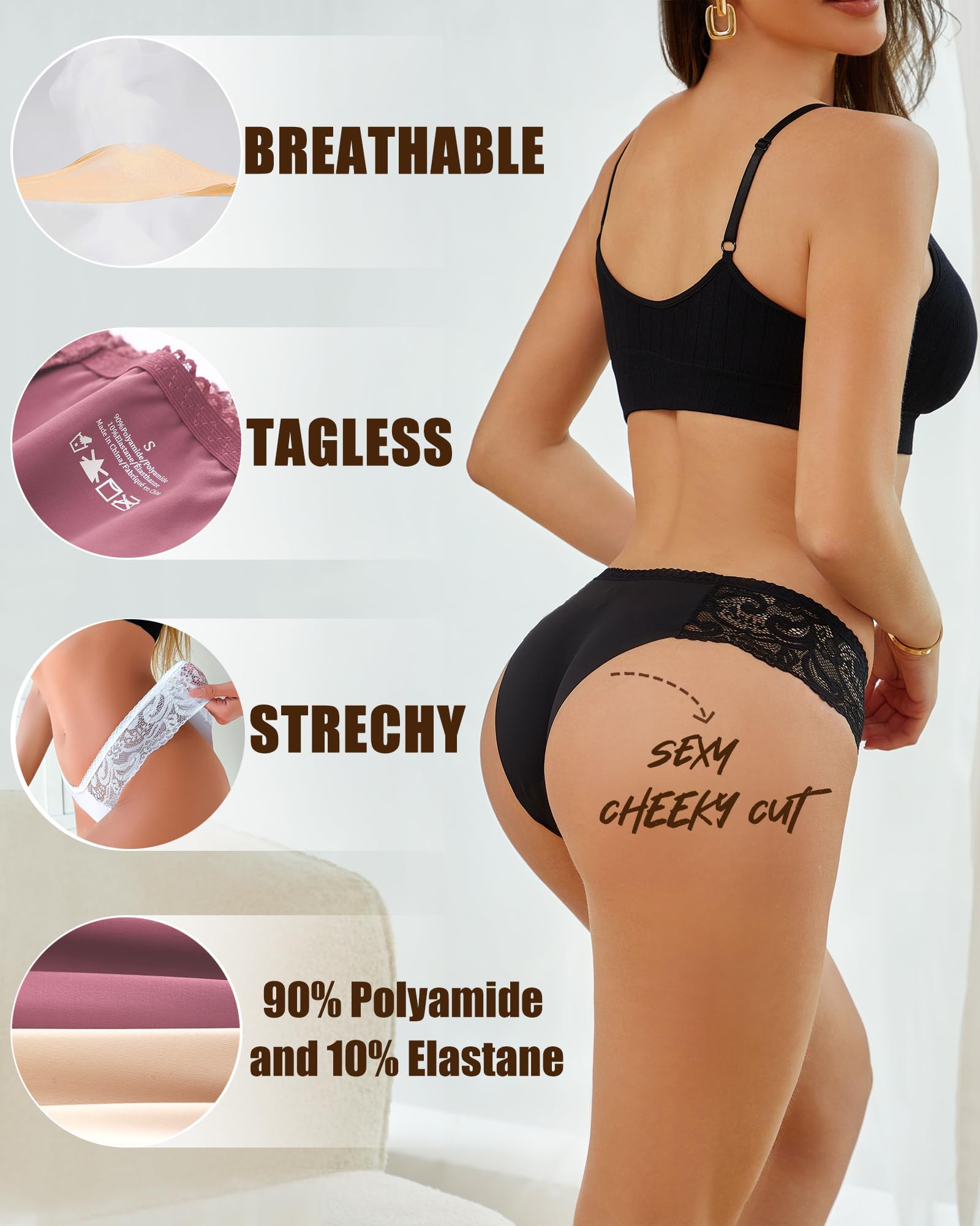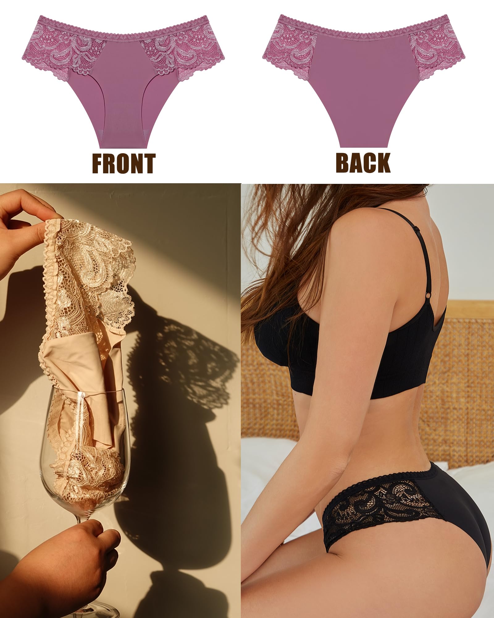 COLOR OPTIONS: Available in a set of five versatile colors—black, copper, white, beige, and dusky mauve—these comfortable sexy underwear are a must-have addition to any lingerie collection. Their seamless, no-show fit, paired with delicate lace accents, makes them both sexy and comfortable—ideal for everyday wear or special occasions.