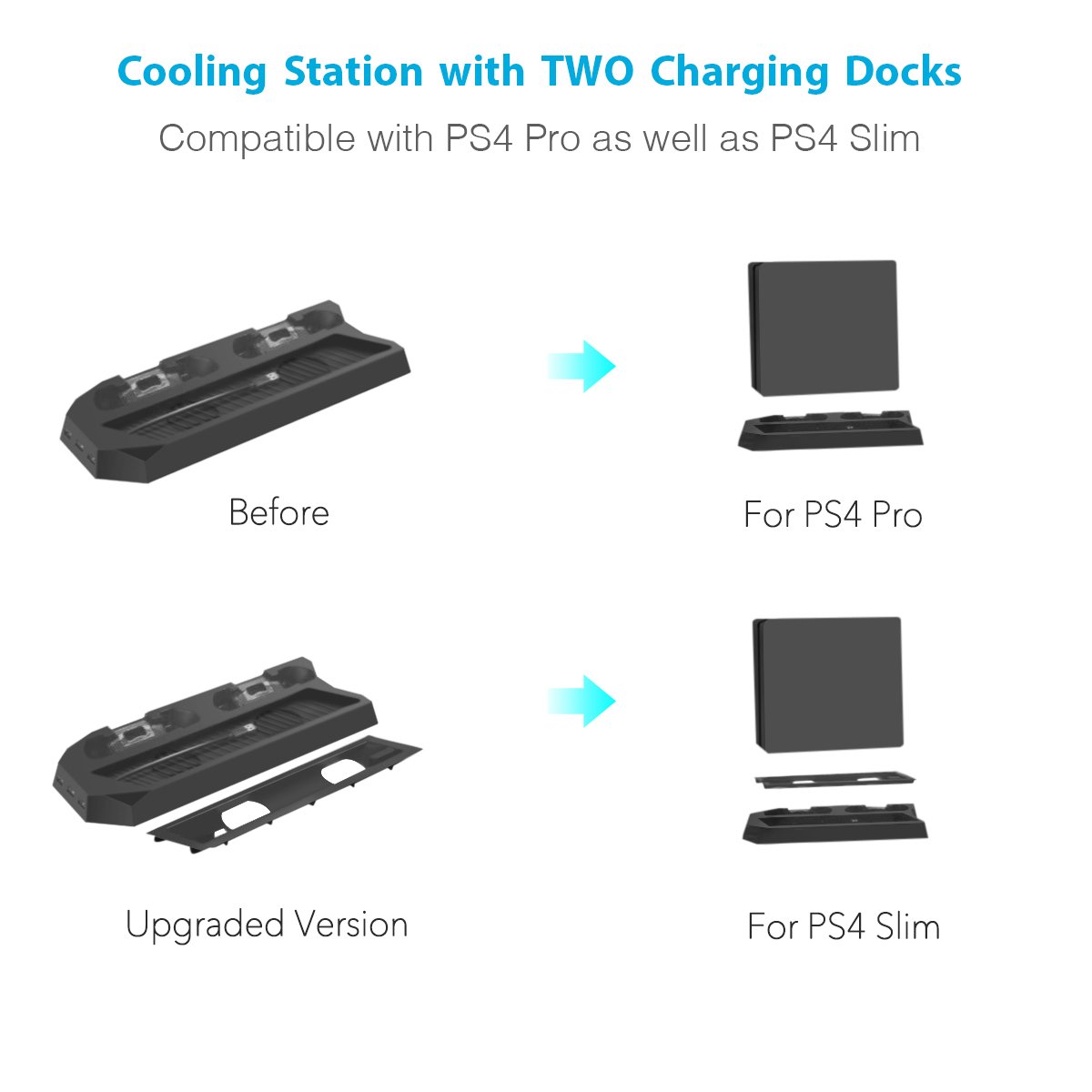 Multi-functional Dual Charger with Console stand, Cooling Fan and USB HUB for PS4 Pro as well as PS4 Slim