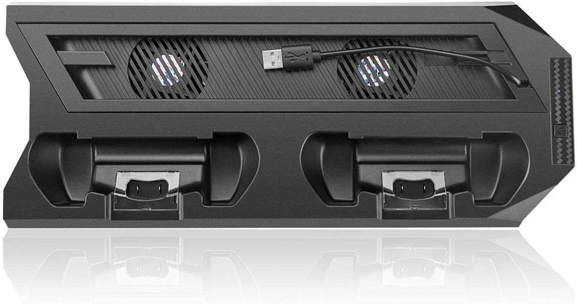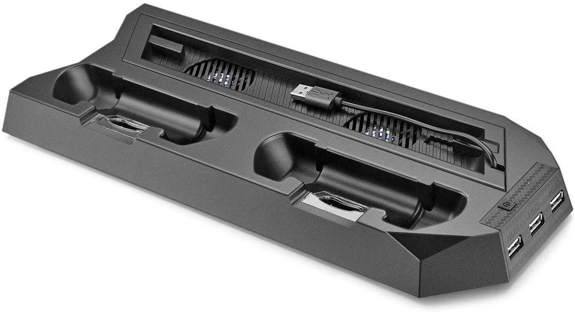 Dual controller charging dock + Vertical stand for game console + Powerful cooling fans + USB HUB ports