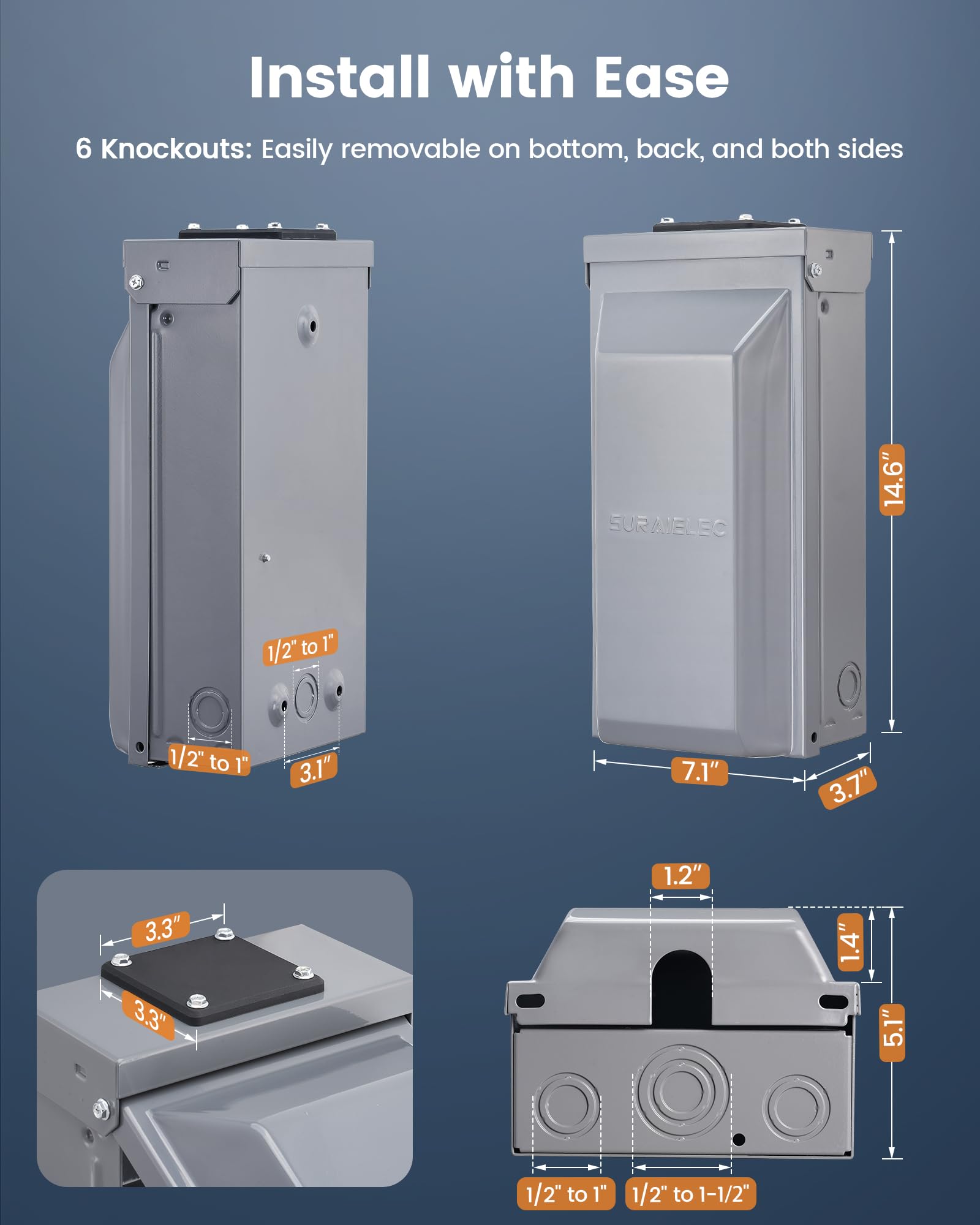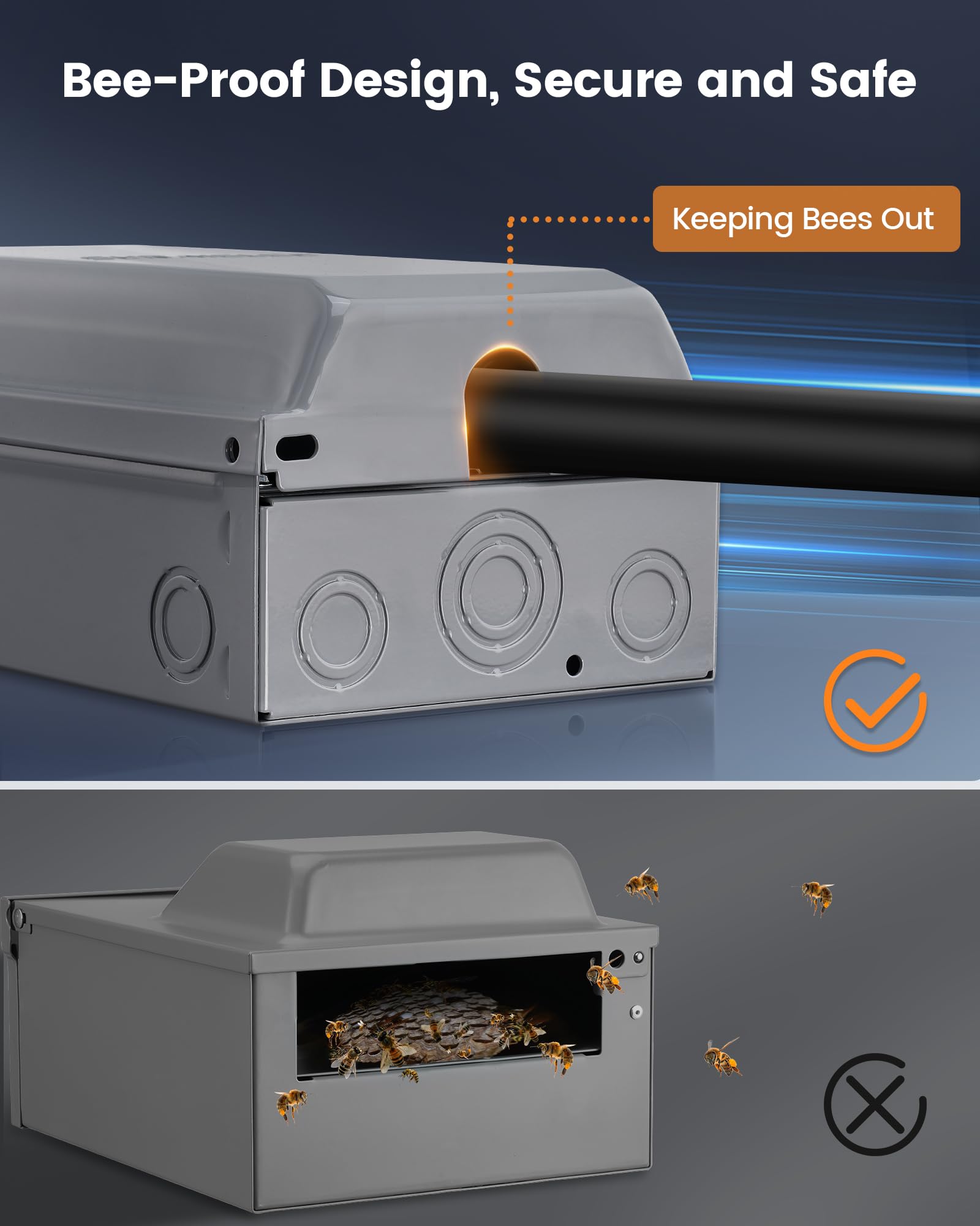 Extra-Large Cover & 3R Rainproof Enclosure:Extra-large cover and expanded capacity keep out dust and humidity for stability. Made from galvanized steel with a 3R rainproof enclosure, it resists damage and rust for lasting reliability