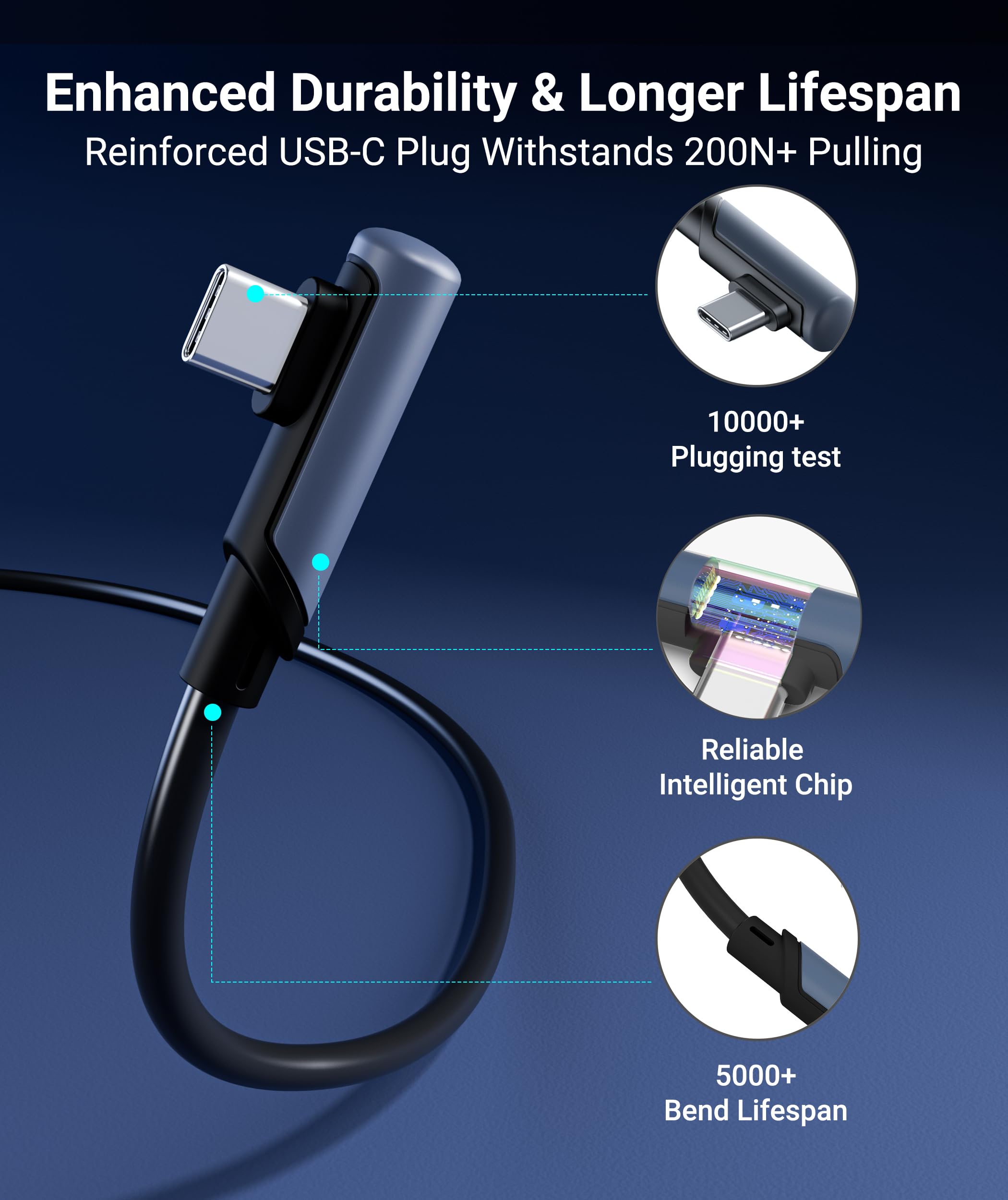 Flexible and Comfortable: This 16 ft long cable gives you maximum freedom of movement without being restricted while immersed in the VR world. At the same time, considering the users' experience, the regular USB C port is especially changed to L Shaped design to enhance customers’ comfort.
