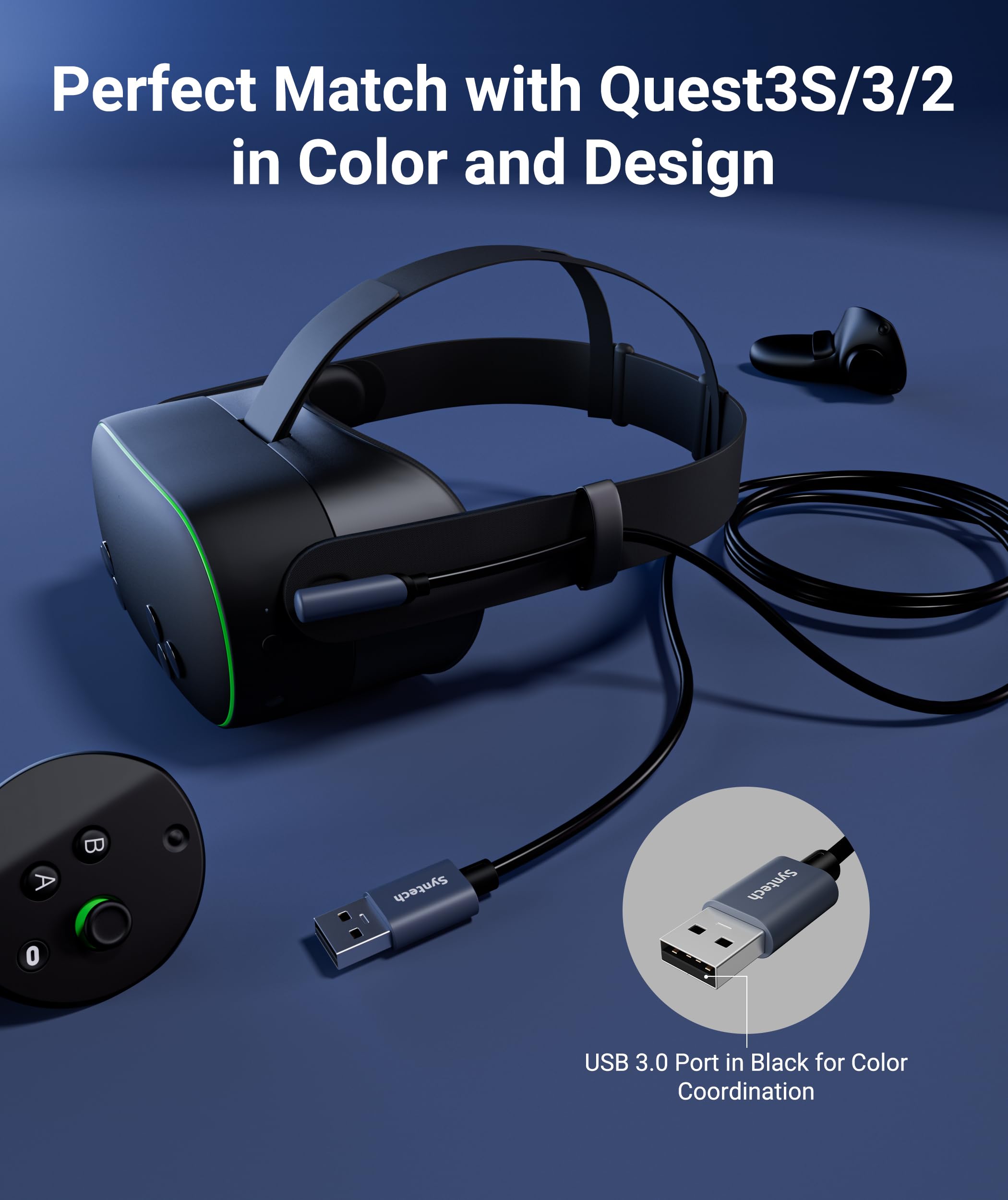 Compatible with Meta Quest 3S/Quest3/Quest2/Pro/Pico4 Accessories: Syntech link cable connects the VR headset to a gaming PC so you can play all Rift apps and Steam VR games, providing the perfect PC VR experience. The cable matches perfectly with the Quest3S/Quest3, Quest2/Pro headset. (Note: Please update your VR headset system and computer's link software to the latest versions for a stable high-performance wired link.)