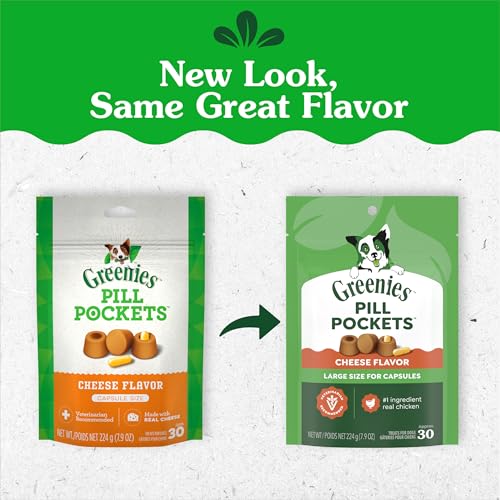Greenies Pill Pockets turn pill time into treat time, they simplify pill giving. These pill pouches for dogs let dog parents and pet owners provide pill administration without messy peanut butter or cheese. Created by veterinarians, the healthy pouch, made with natural flavor masking ingredients plus trace nutrients, masks smell and taste so medication delivery stays stress-free in your daily medication routine at home. Suitable for large or small breeds to encourage voluntary ingestion, this capsule-size formula helps pet parents maintain health and dog wellness through easy medication administration while keeping paws clean. It reduces medication refusal, simply drop the tablet into the pouch, pinch, offer, and watch it vanish--administering medicine with this pill mask never felt so rewarding. Data on file at Mars Petcare US, Inc. 2018