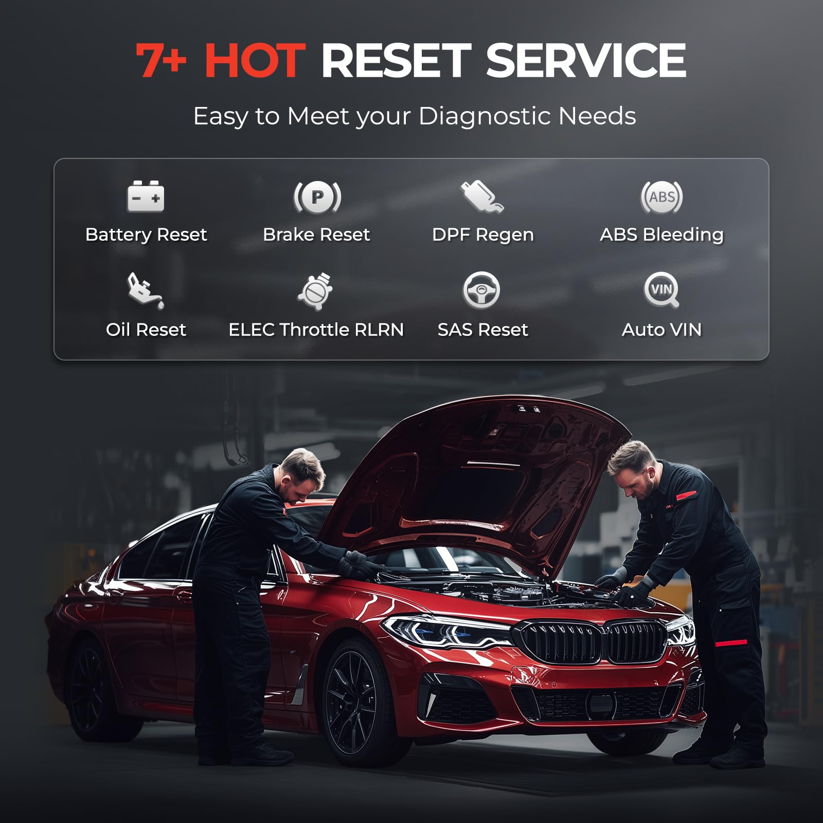 đ 7 Resets in One â Keep Maintenance Simple & Affordable. Tired of running to the shop for every reset? This diagnostic tool offers 7 frequently used reset functions to make maintenance faster and easier: ABS Auto Bleed, Throttle (Idle) Relearn, DPF Regeneration, Oil Reset, SAS Calibration, Brake Reset, and Battery Management (BMS Reset). These functions allow accurate calibration and system resets after repairsâsaving time, cutting costs, and keeping your vehicle in peak condition. Perfect for both professional mechanics and DIY car owners.