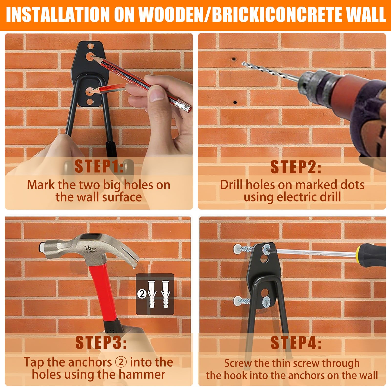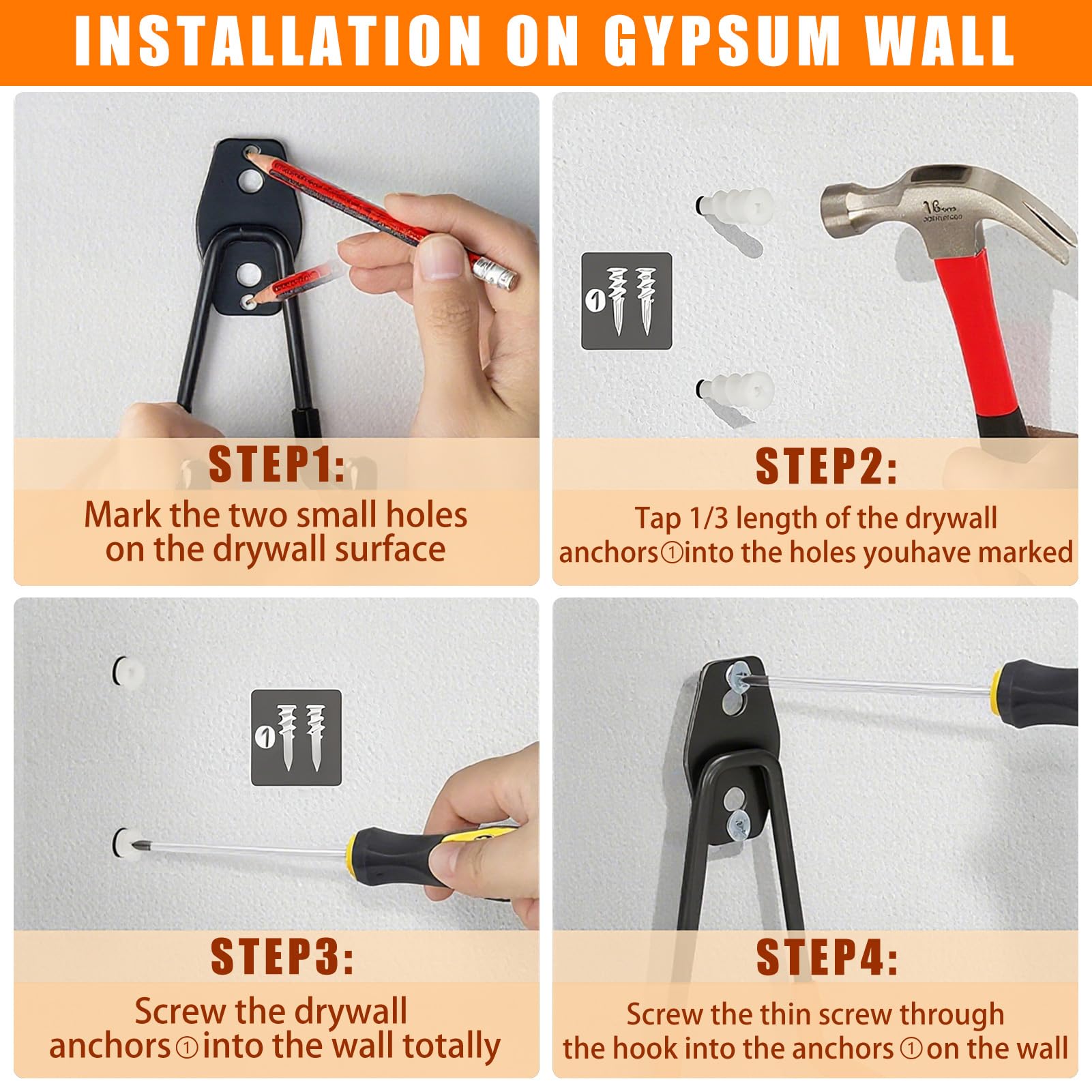Easy & Versatile Installation: Equipped with screws and anchors suitable for various surfaces—including plaster, wood, brick, and concrete—these garage wall hooks can be quickly installed with basic tools like a drill, hammer, and screwdriver. Simplify your storage setup without hassle.